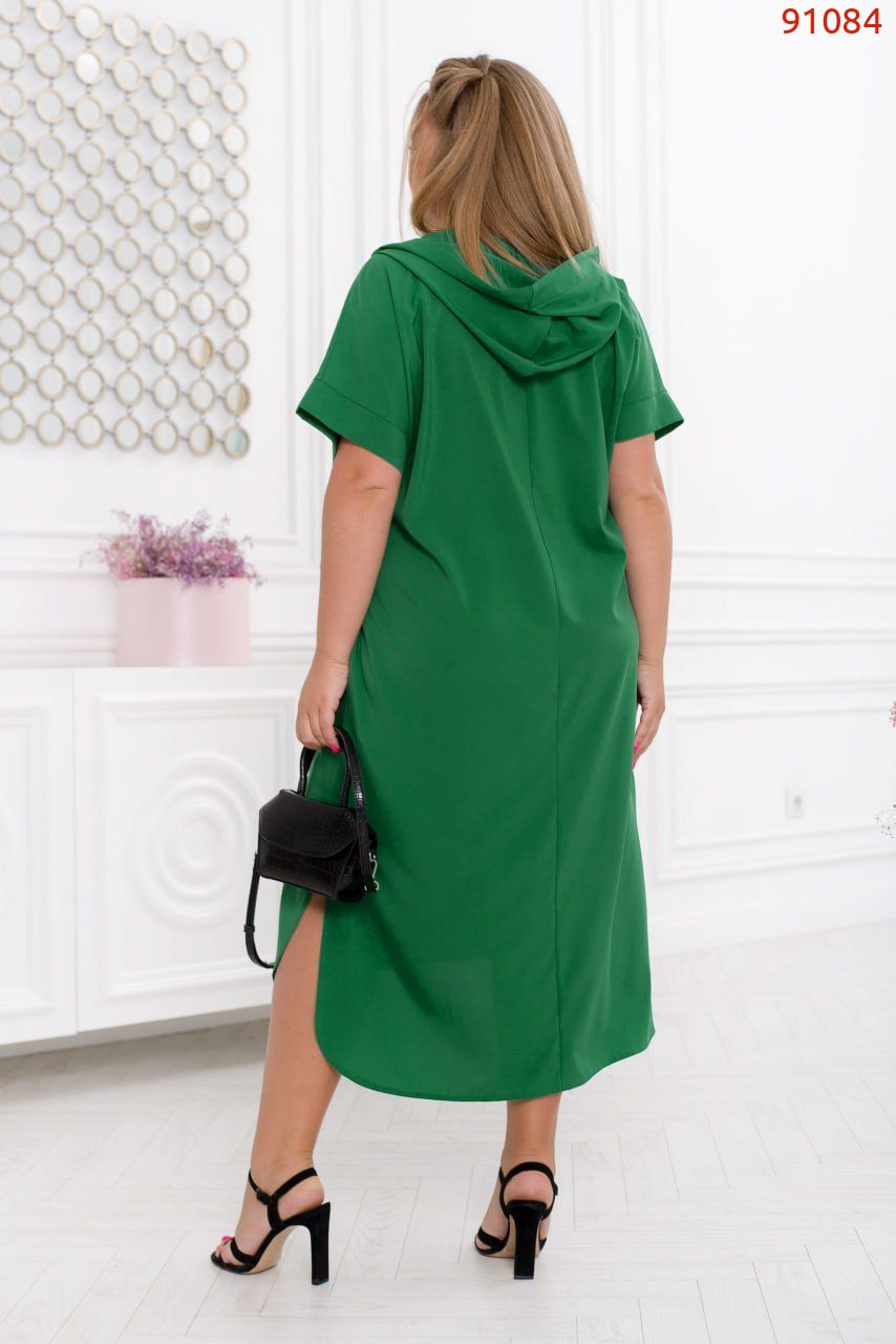 Ця легка сукня в спортивному стилі стане чудовим вибором для будь-якого типу фігури. Вона поєднує зручність і стиль, надаючи вам відчуття комфорту протягом усього дня. Сукня має виріз в-форми, який плавно переходить в капюшон через який проходить шнурок-стрічка. Цей елемент додає сукні оригінальності та створює додатковий акцент. Рукава спущеного крою з невеликим манжетом додають сукні легкості та свободи рухів. Сукня також має бічні кишені, що додають практичності та зручності, дозволяючи зберігати необхідні речі під рукою. Поділ сукні продовжено по спинці й заокруглено, що створює ефектний вид. Бічні розрізи додають сукні додаткової свободи рухів і підкреслюють вашу жіночність.