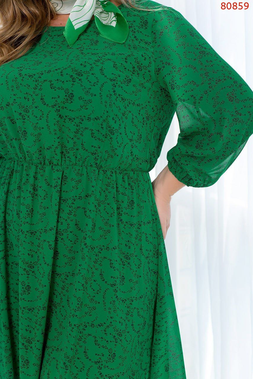 Рукава сукні довжиною 3/4 не мають підкладки, що забезпечує її легкість та повітряність. На зап'ястках рукавів вшиті резинки, що додає сукні об'єму та елегантності. Талія відрізна з вертикальними виточками, які підкреслюють жіночність фігури та надають сукні додаткового орнаменту. А обрамити талію можна текстильним пояском, який входить в комплект.