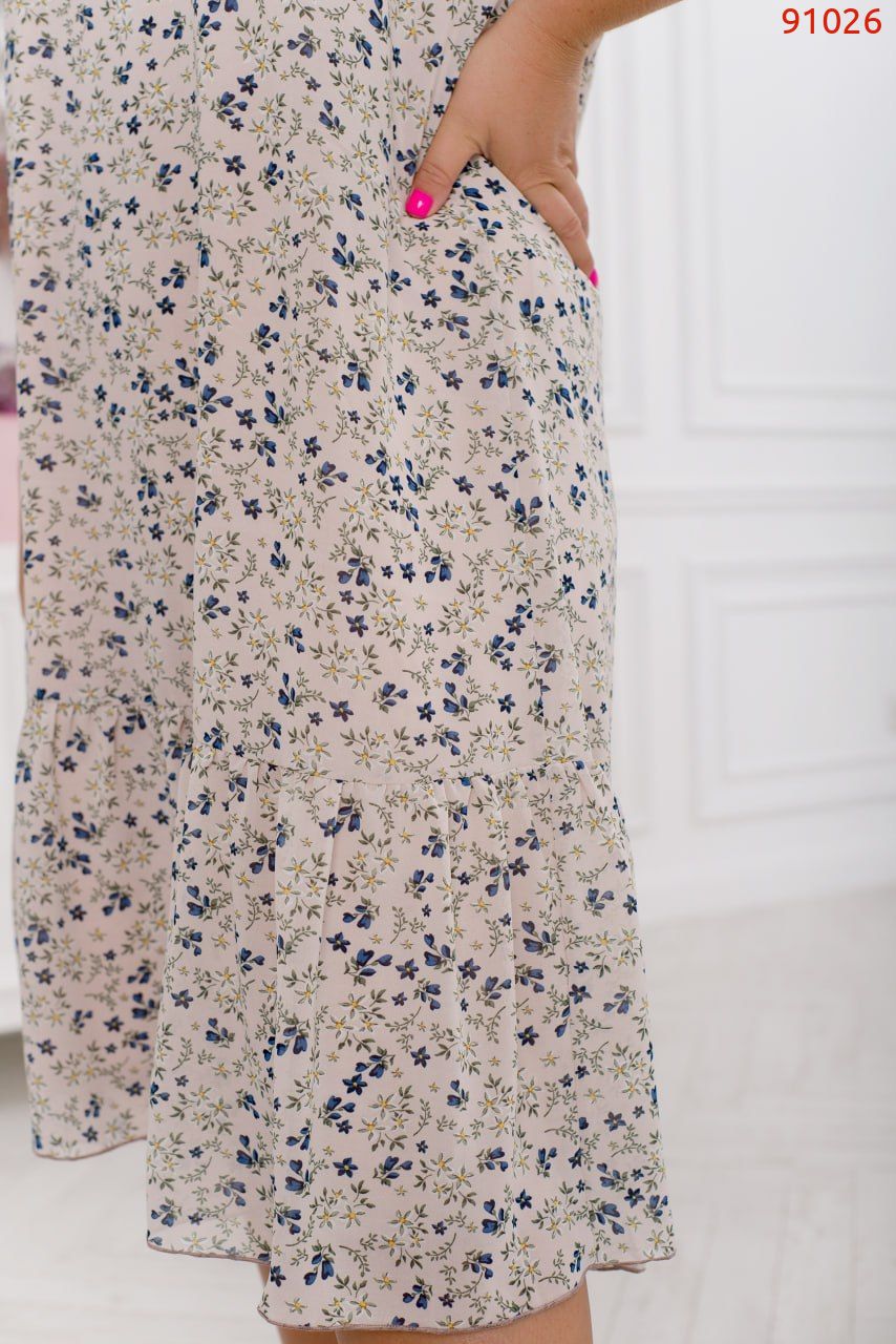 Ця модель оснащена трикотажною підкладкою. Напівпрозорі короткі рукава на резинках додають нотку грації. На сукні є грайливий воланчик, який підшитий по краю подолу. Він додає сукні легкості й рухливості. Ця сукня – ідеальний вибір для особливих подій, романтичних побачень або прогулянок по місту. Вона дозволить вам відчути себе красивою і привабливою, засвідчуючи ваш бездоганний смак і стиль.