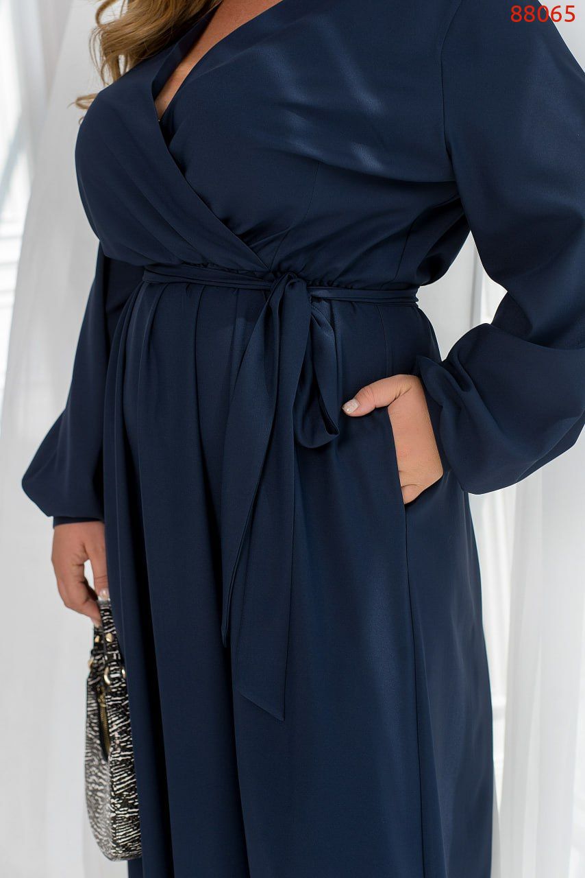 Наша нова сукня поєднує в собі вишуканість та комфорт, створюючи гармонійний образ. Завдяки гумці на талії, вона має ідеальну посадку, що чудово підкреслить вашу фігуру. Верх сукні оформлений за допомогою запАху, що додає йому чарівний акцент та витонченість. Довгі рукави з манжетами надають сукні елегантності та роблять її відмінною в будь-яку пору року.