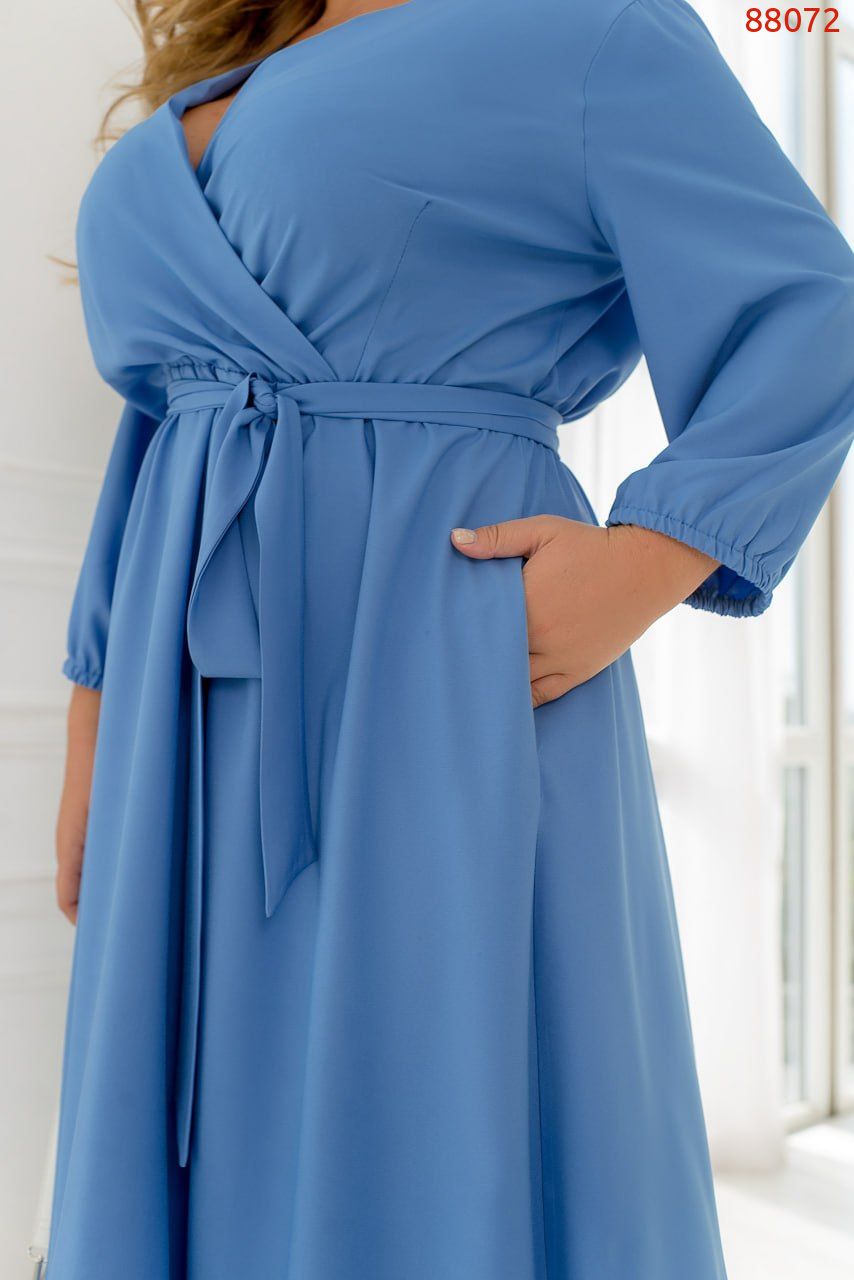 Наша нова сукня – це витонченість і комфорт, об'єднані в одному виробі.Сукня має бездоганну посадку завдяки гумці на талії, яка чудово підкреслить вашу фігуру. Ліф сукні підшитий на запАх, що надає йому чарівного акценту та вишуканості. Рукава 3/4, доповнені гумкою, додають сукні елегантності та роблять її актуальною в будь-який час року. Не менш важливою деталлю є врізні кишені по боках, які не тільки підкреслюють дизайн, але і додають практичності вашому образу. Ви зможете легко зберегти свої необхідні речі під рукою, не втрачаючи стиль і грацію. Така сукня – це завжди актуальний та елегантний вибір, який підкреслить вашу жіночність та чарівність. Ця сукня стане вашим незамінним другом, будь то вечірні заходи, романтичні прогулянки чи офісний день.