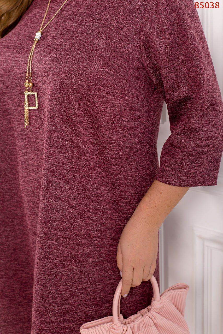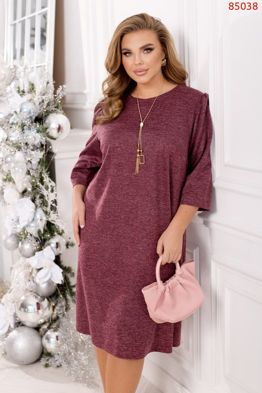 Ця сукня вражає своєю елегантністю та мінімалістичним дизайном, створюючи чарівну атмосферу для святкового вечора. Її горловина має напівкруглий широкий виріз, надаючи образу витонченість. Вільний рукав без манжета завершується на три чверті довжини, створюючи вигляд, який підкреслює елегантність. Відсутність застібки робить цю сукню максимально зручною та легкою у використанні, ідеально підходячи для святкових заходів. Ця сукня стане чудовим вибором для вишуканих та неповторних образів під час новорічних свят.