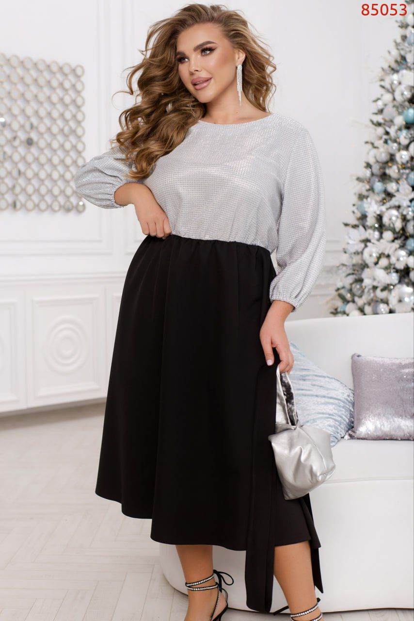 Ця яскрава святкова сукня виготовлена із комбінації двох тканин. Ліф та рукава виготовлені із блискіток, які грайливо переливаються на світлі та трохи змінюють відтінки сукні, надаючи їй ефект хамелеона. На рукавах сукні вшиті резинки для зручності та елегантності. Талія відрізна, з вертикальними виточками, які підкреслюють жіночність фігури та додають грації. Нижня частина сукні виготовлена із костюмки, надаючи сукні додатковий об'єм та розкіш. А обрамити талію можна текстильним пояском, який входить в комплект, завершуючи образ та надаючи йому завершений вигляд. Ця сукня ідеально підкреслить ваш стиль та вишуканість на будь-якому новорічному заході.