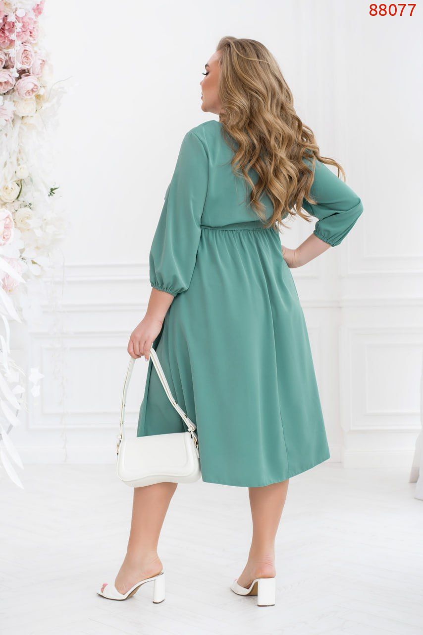Ця однотонна сукня міді з круглою горловиною привертає увагу своєю простотою та елегантністю. Рукава 7/8 з гумкою надають зручність та додають оригінальність образу. Відрізна талія із гумкою, яку можна підкреслити входячим пояском, робить образ акцентованим та стильним. Ця сукня стане чудовим вибором для різних заходів, де важливо поєднати елегантність та комфорт.