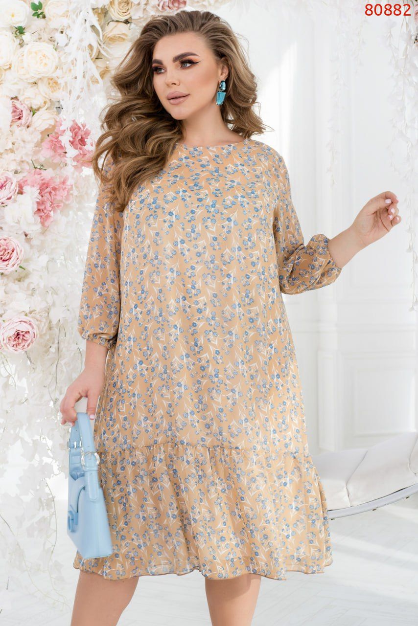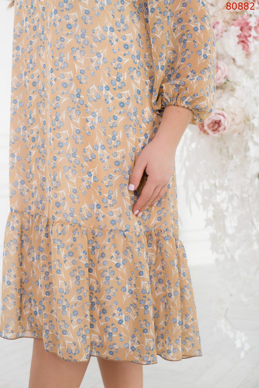 Ця вишукана повітряна сукня, виготовлена зі струмуючої шифонової тканини, призначена для того, щоб виражати вашу жіночність, тендітність і ніжність. Її елегантний дизайн роблять цю модель ідеальним вибором для особливих випадків та романтичних моментів. Сукня має трикотажну підкладку, яка не лише забезпечує додатковий комфорт. Напівпрозорі рукава довжиною 3/4 на резинках створюють вигляд динамічності та легкості, доповнюючи їх грайливим воланчиком, підшитим по краю подолу.