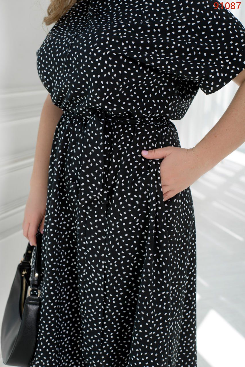 Ця легка сукня в горошок - ідеальний вибір для створення літнього образу, що поєднує в собі ніжність і елегантність. Має напівкруглий виріз горловини. Суцільно кроєний рукав із манжетом. Талія на гумці. У комплекті йде трикотажний пояс, що б підкреслити жіночність фігури. Ця сукня ідеально підходить для прогулянок, вечірок, відпочинку на природі або романтичних зустрічей. Насолоджуйтеся легкістю і красою цього вбрання.