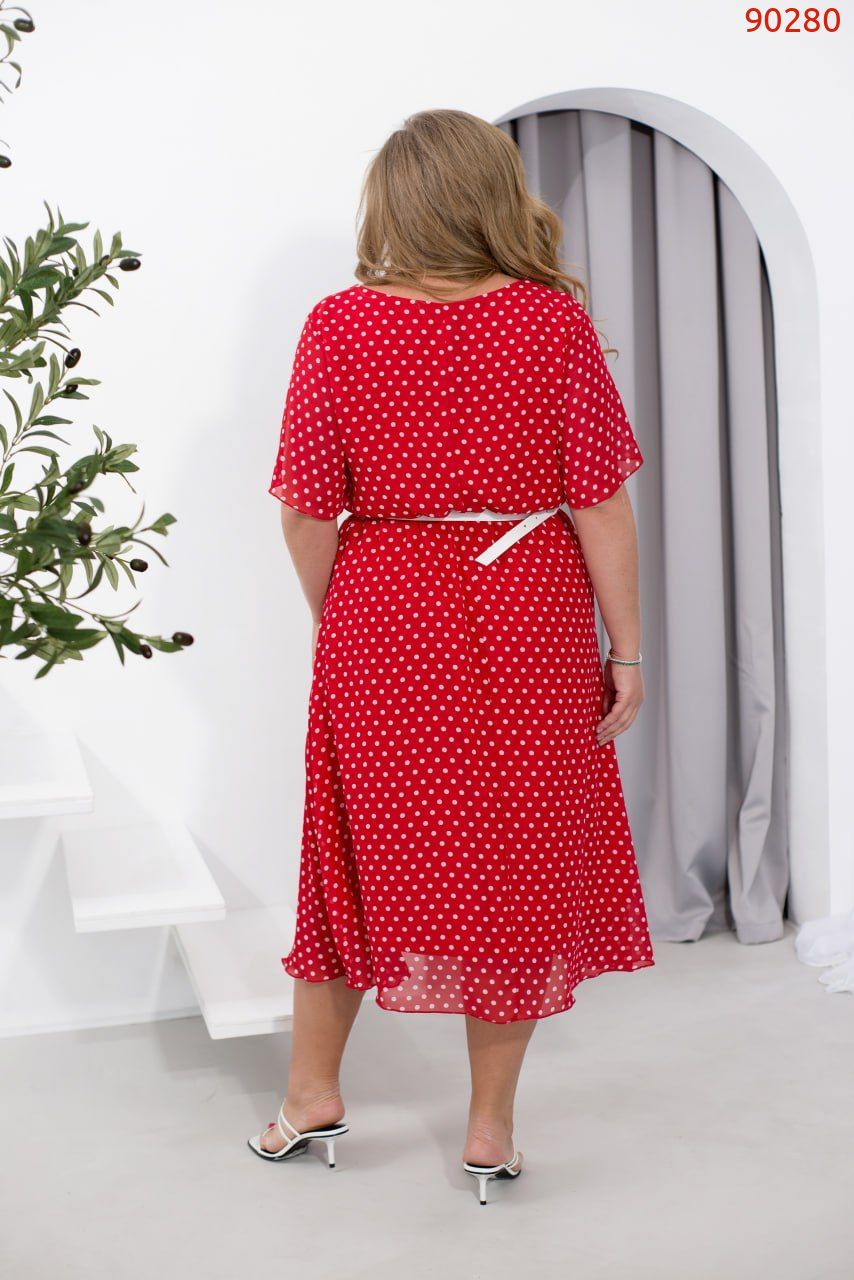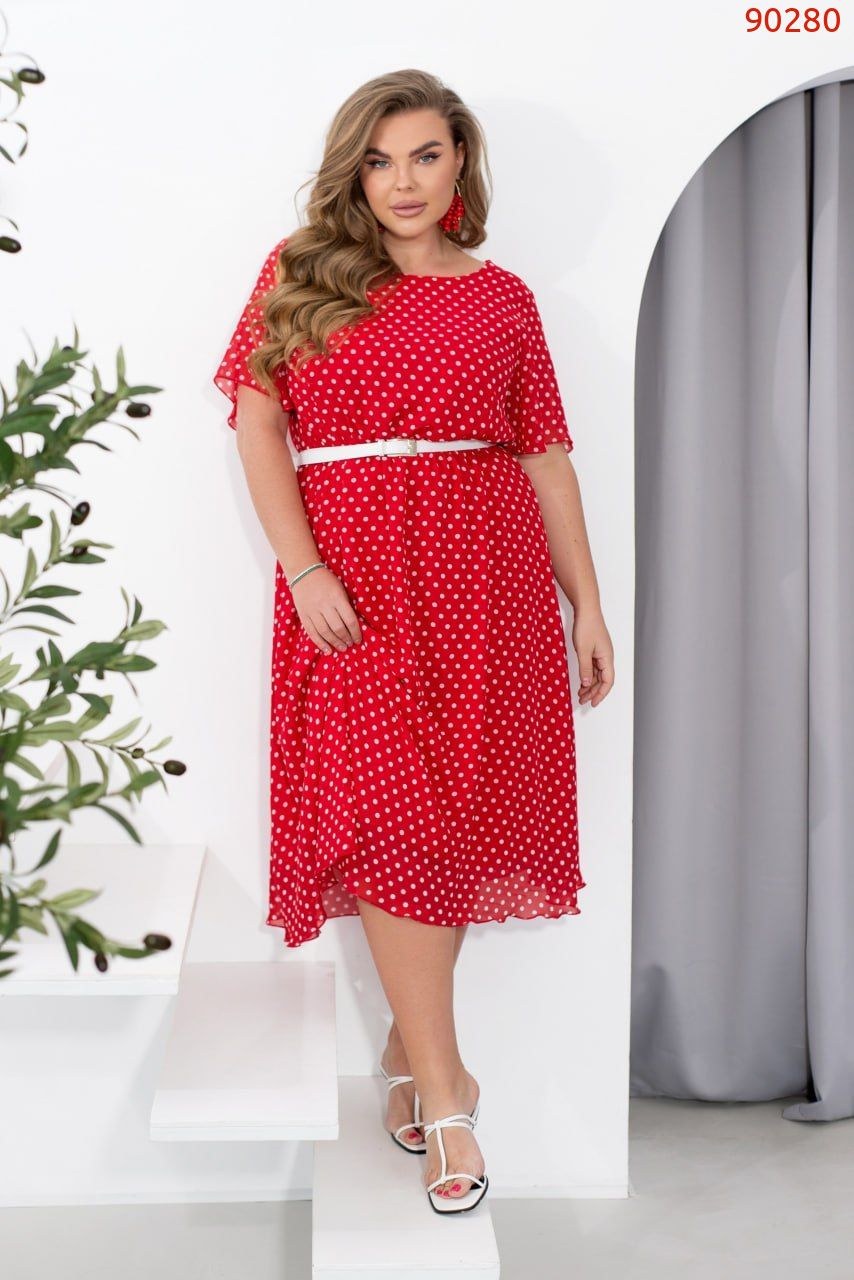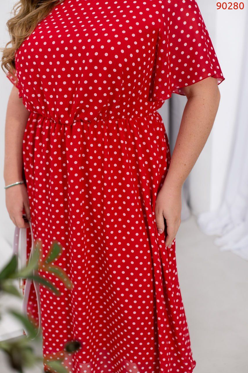 Ця повітряна сукня з легкого шифону створює враження легкості та грації. Вона має півкруглий виріз горловини та відрізну лінію талії, яка спадає плісованими оборками, надаючи образу ніжності. Сукня складається з двох шарів тканини: верхній шар – напівпрозорий шифон, а нижній – м’який та приємний на дотик, що дарує комфорт протягом усього дня. Рукава короткі та вільні, що забезпечує ще більшу повітряність і зручність. Для додаткового акценту на талії можна використовувати пояс, який входить в комплект. Ця сукня – ідеальний вибір для літньої прогулянки або романтичного побачення, створюючи образ ніжної та витонченої жінки.