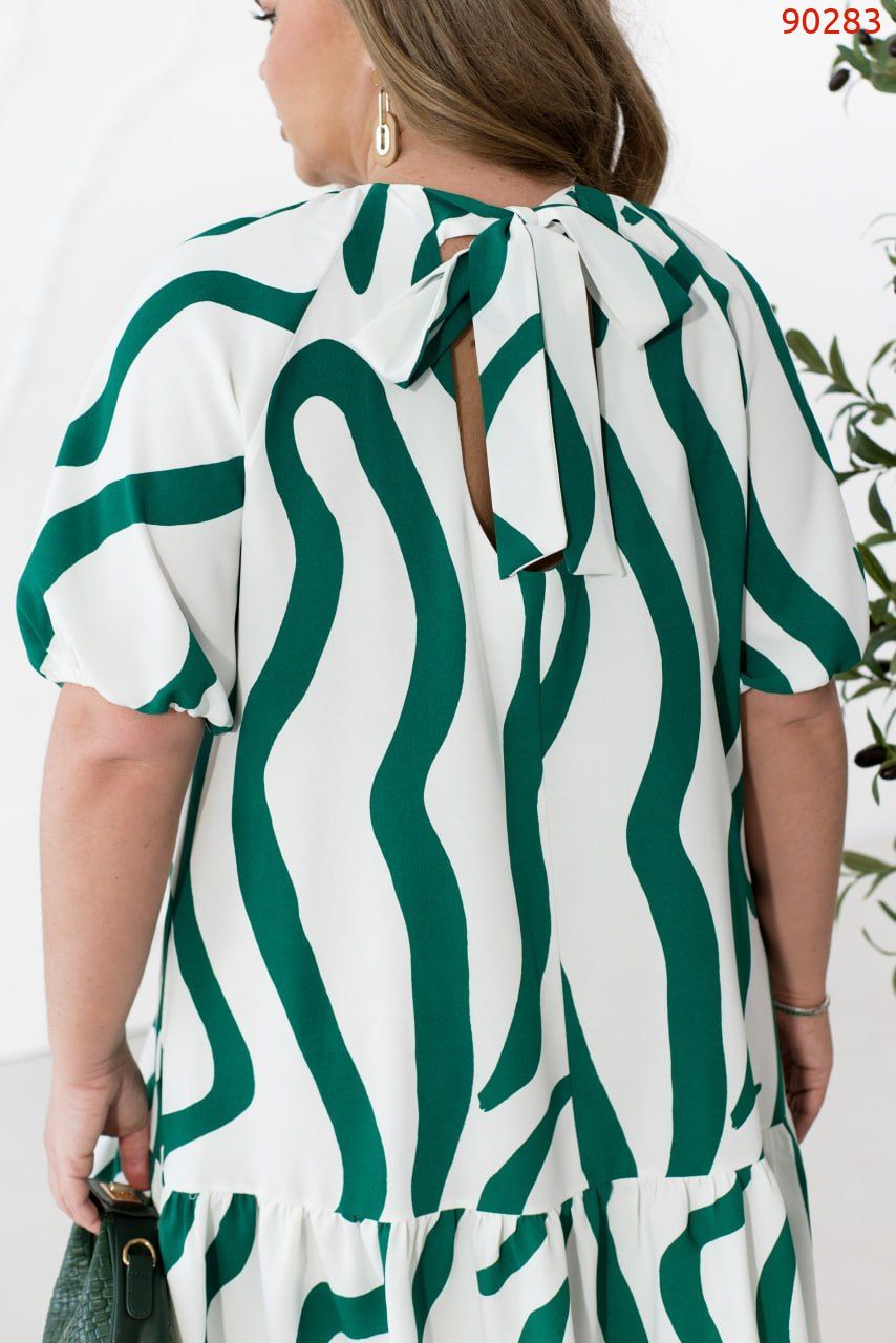 Ця сукня – про легкість, затишок і трішки романтики. Вільний фасон ідеально сідає на будь-яку фігуру, даруючи максимальний комфорт. Напівкругла горловина м’яко зібрана на гумці – виглядає ніжно та делікатно. Короткі рукави у стилі реглан із легкими збірками на резинках додають силуету об’єм і невимушеність. Родзинка моделі – круглий виріз на спинці, зав’язаний стрічкою в тон, що додає образу жіночності та легкої інтриги. Вздовж усієї спинки йде акуратний шов, який гарно оформлює силует і підкреслює вертикальну лінію. А поділ, оздоблений воланом, створює відчуття руху, легкості та літнього настрою. Сукня чудово підійде як для прогулянок біля моря, так і для побачень, посиденьок на терасі чи просто легких буднів, коли хочеться виглядати особливо.