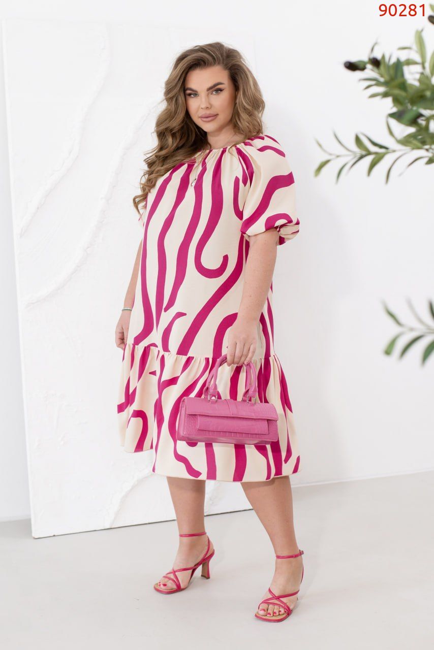 Ця сукня – про легкість, затишок і трішки романтики. Вільний фасон ідеально сідає на будь-яку фігуру, даруючи максимальний комфорт. Напівкругла горловина м’яко зібрана на гумці – виглядає ніжно та делікатно. Короткі рукави у стилі реглан із легкими збірками на резинках додають силуету об’єм і невимушеність. Родзинка моделі – круглий виріз на спинці, зав’язаний стрічкою в тон, що додає образу жіночності та легкої інтриги. Вздовж усієї спинки йде акуратний шов, який гарно оформлює силует і підкреслює вертикальну лінію. А поділ, оздоблений воланом, створює відчуття руху, легкості та літнього настрою. Сукня чудово підійде як для прогулянок біля моря, так і для побачень, посиденьок на терасі чи просто легких буднів, коли хочеться виглядати особливо.