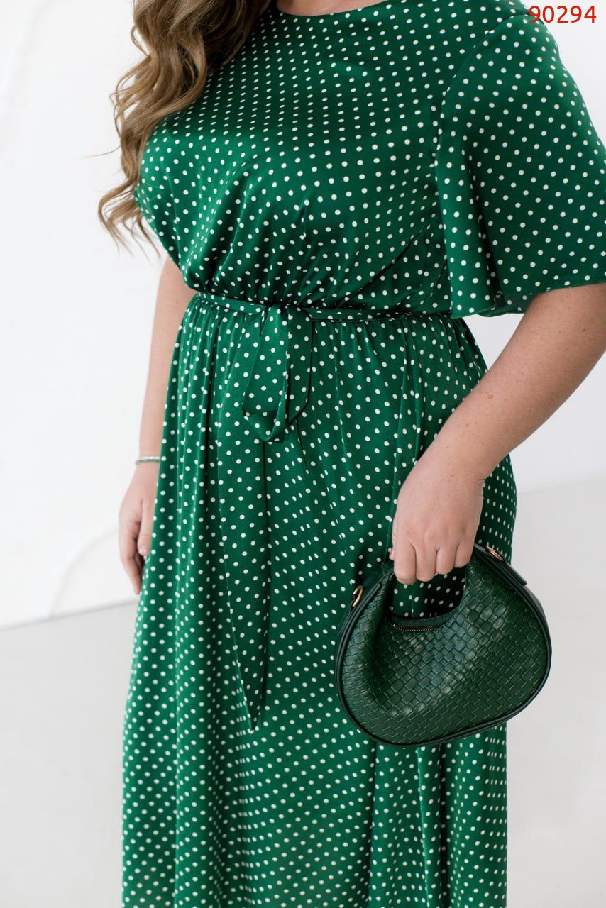 46-48 р-р: довжина сукні 116см, довжина рукава від плечового шва 23см, обхват рукава 46см, ОГ - 100/104см, ОТ -68/106см, OC -150см.