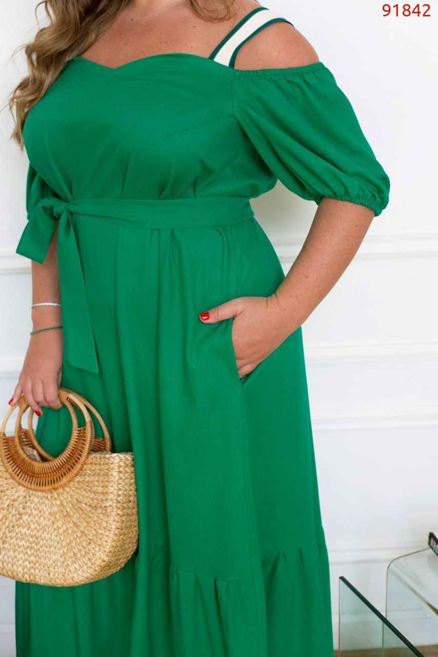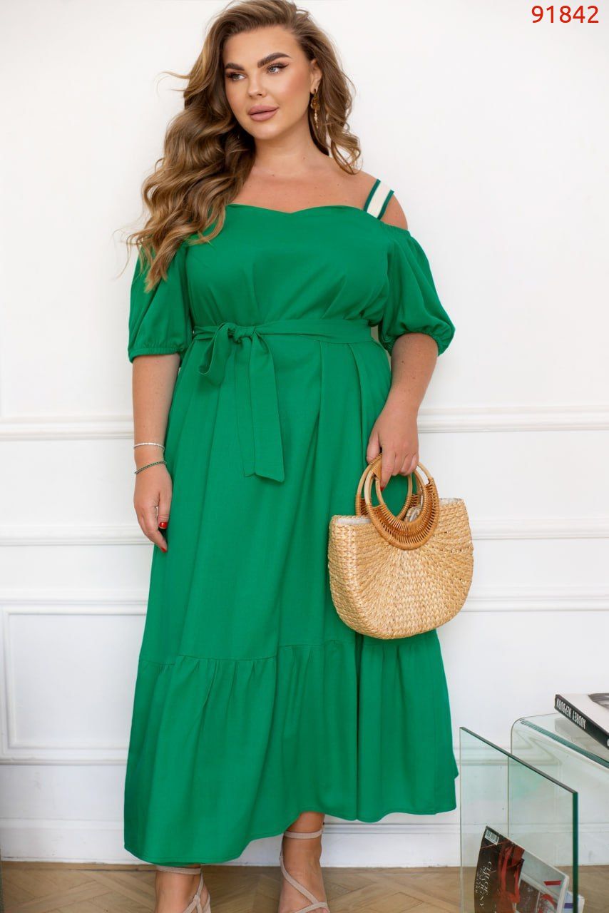 50-52 р-р: довжина сукні 117см, довжина рукава від плечового шва 25см, обхват рукава 48см, ОГ - 110см, ОТ -126см, OC -142см.