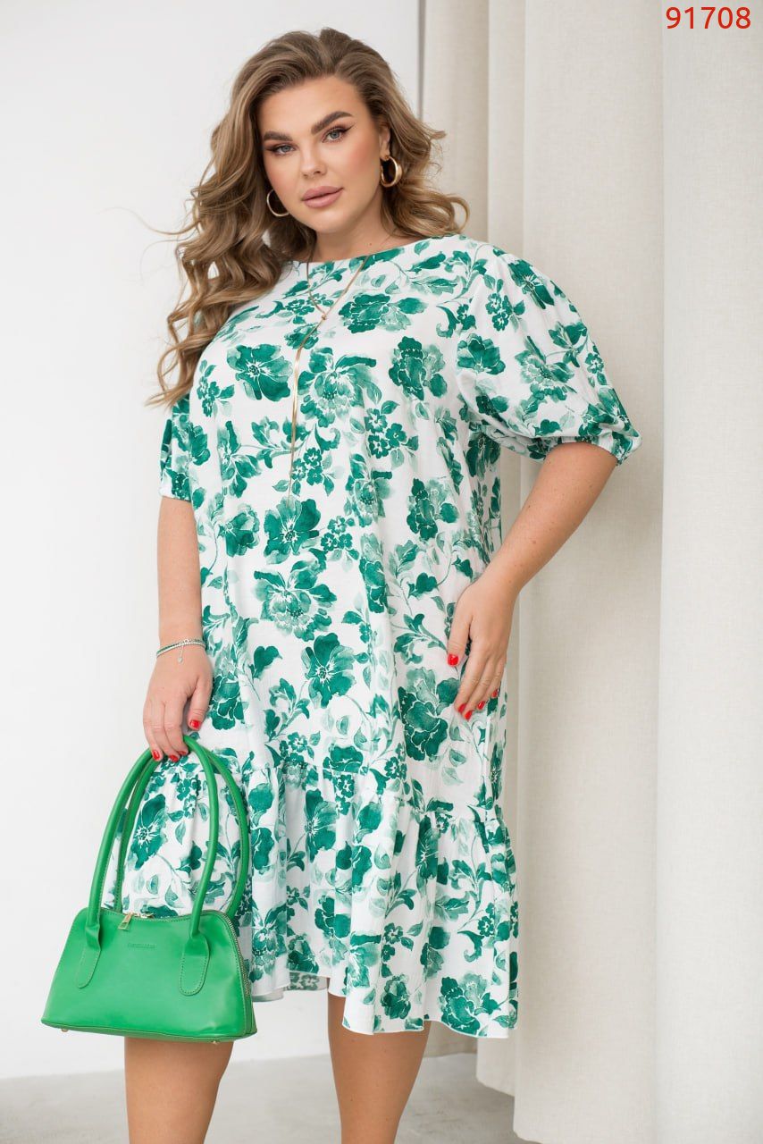 Повітряна, витончена і така ніжна – ця сукня з жатого льону створена для того, щоб ти почувалась особливою. Вільний крій дарує комфорт і легкість, а тканина красиво струмує по фігурі. Короткі рукави на резиночках додають шарму, а ніжний волан по подолу – грайливості. Ідеальний варіант для побачень, прогулянок і всіх моментів, коли хочеться трохи більше жіночності.