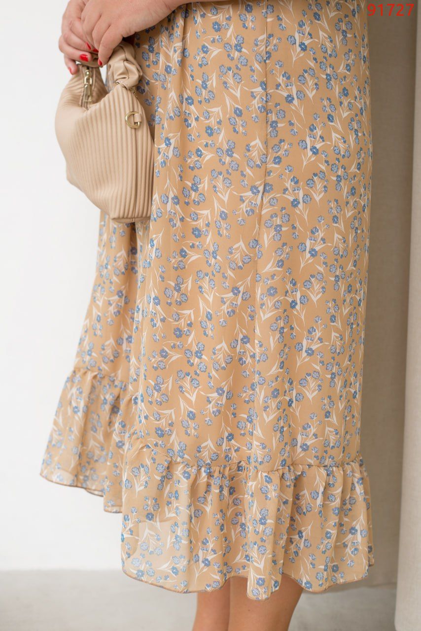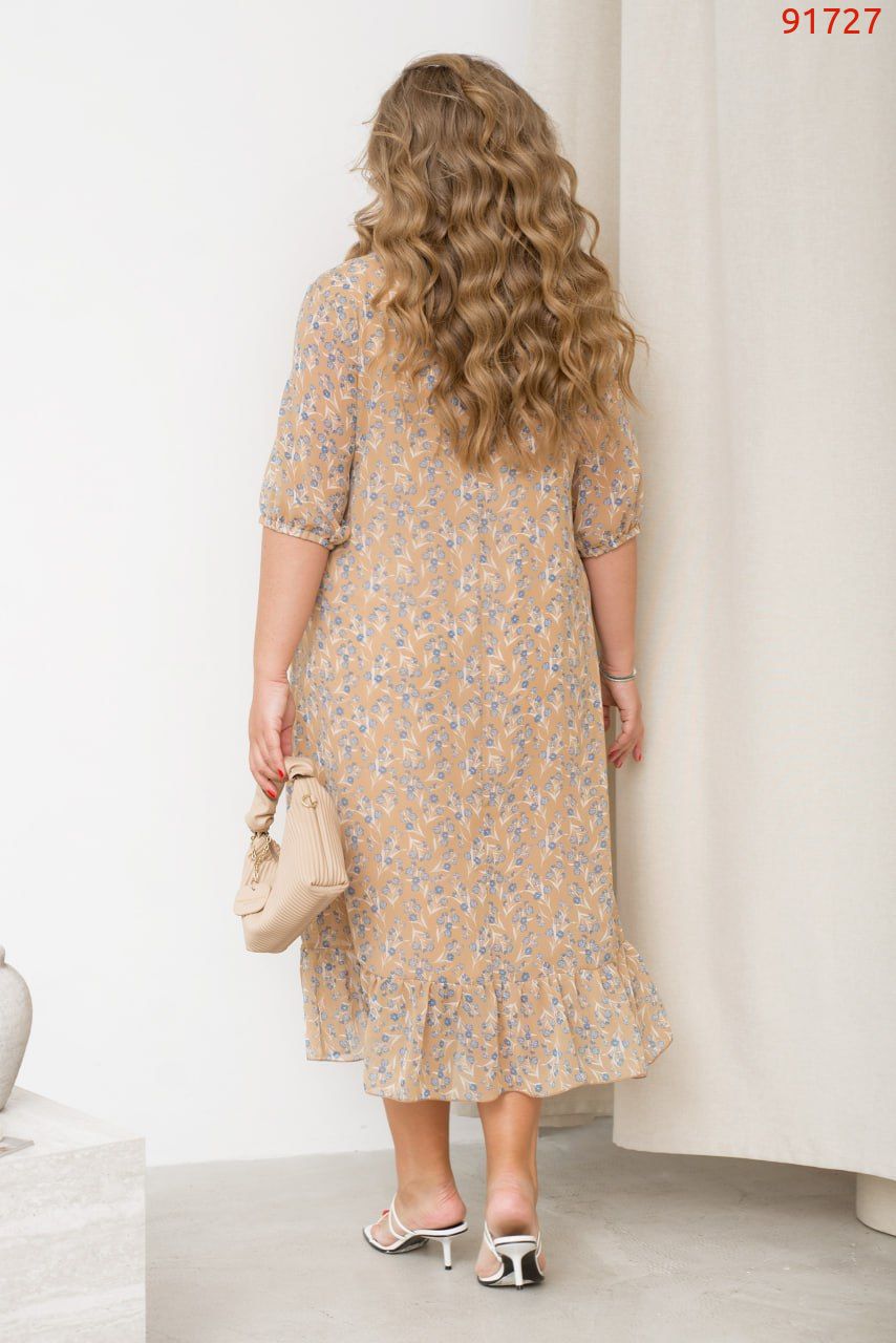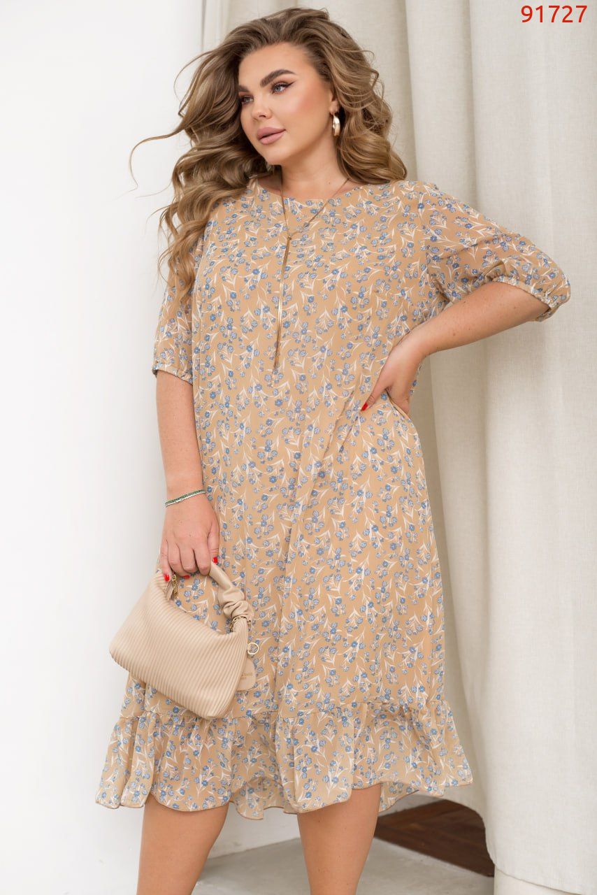 Сукня з легкого шифону – ідеальний вибір для теплих днів. Вона має комфортний вільний крій, що дарує відчуття легкості, а довжина міді з воланом внизу додає грайливості та жіночності. Рукави до ліктя з м’якою резиночкою роблять образ стильним і зручним. Модель доповнена трикотажною підкладкою для твого комфорту, а по спинці до волана проходить акуратний шов, який додає силуету охайності та гарної посадки.