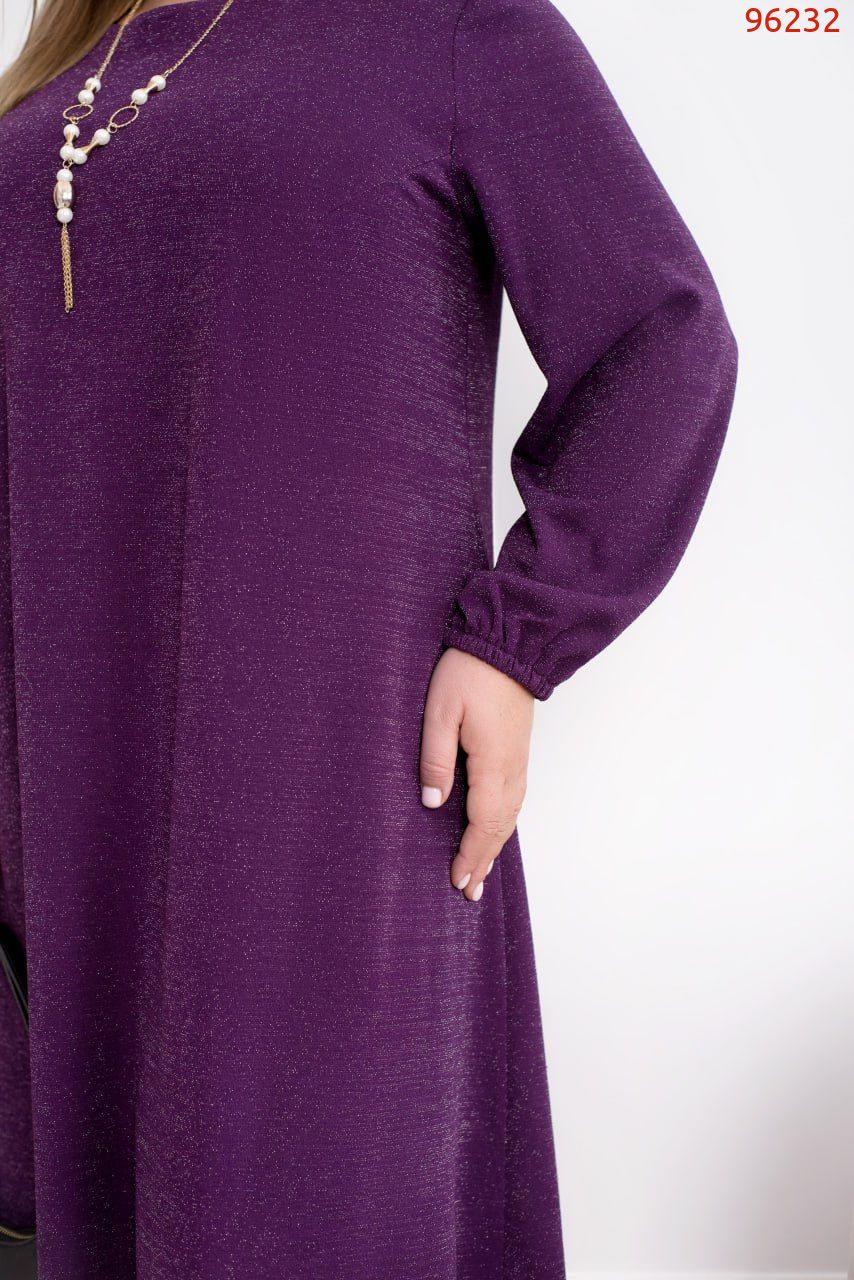 Елегантна та мінімалістична сукня, що зачаровує своїм делікатним блиском люрексу. Модель має напівкруглий широкий виріз горловини, діагональні виточки на грудях, які красиво підкреслюють силует, та зручні кишені у бокових швах. Вільні рукави, зібрані на зап’ястках резинкою без манжетів, додають легкості та жіночності. Без застібок – лише комфорт, блиск і невимушена елегантність у кожному русі.