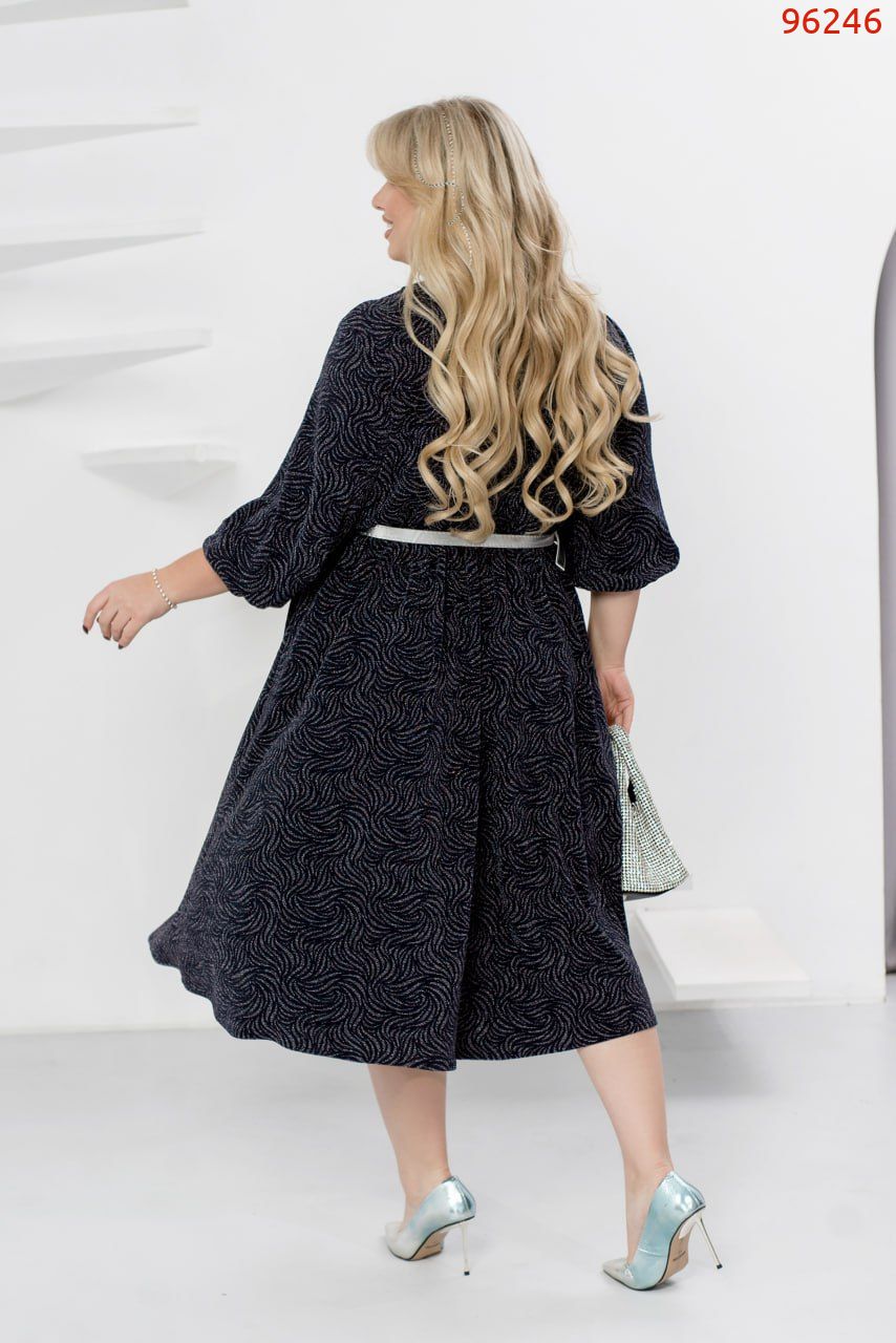 Сукня міді з мерехтливим дизайном – витончений баланс між елегантністю та повсякденною зручністю. Півкруглий виріз горловини, відрізна лінія талії та м’які плісовані оборки створюють ніжний жіночний силует. Рукави 3/4 із легким об’ємом на зап’ястках додають шарму, а поясок із комплекту підкреслює талію. М’який блиск тканини м’яко грає на світлі, надаючи образу святкового настрою навіть у звичайний день. Срібний пояс входить в комплект.