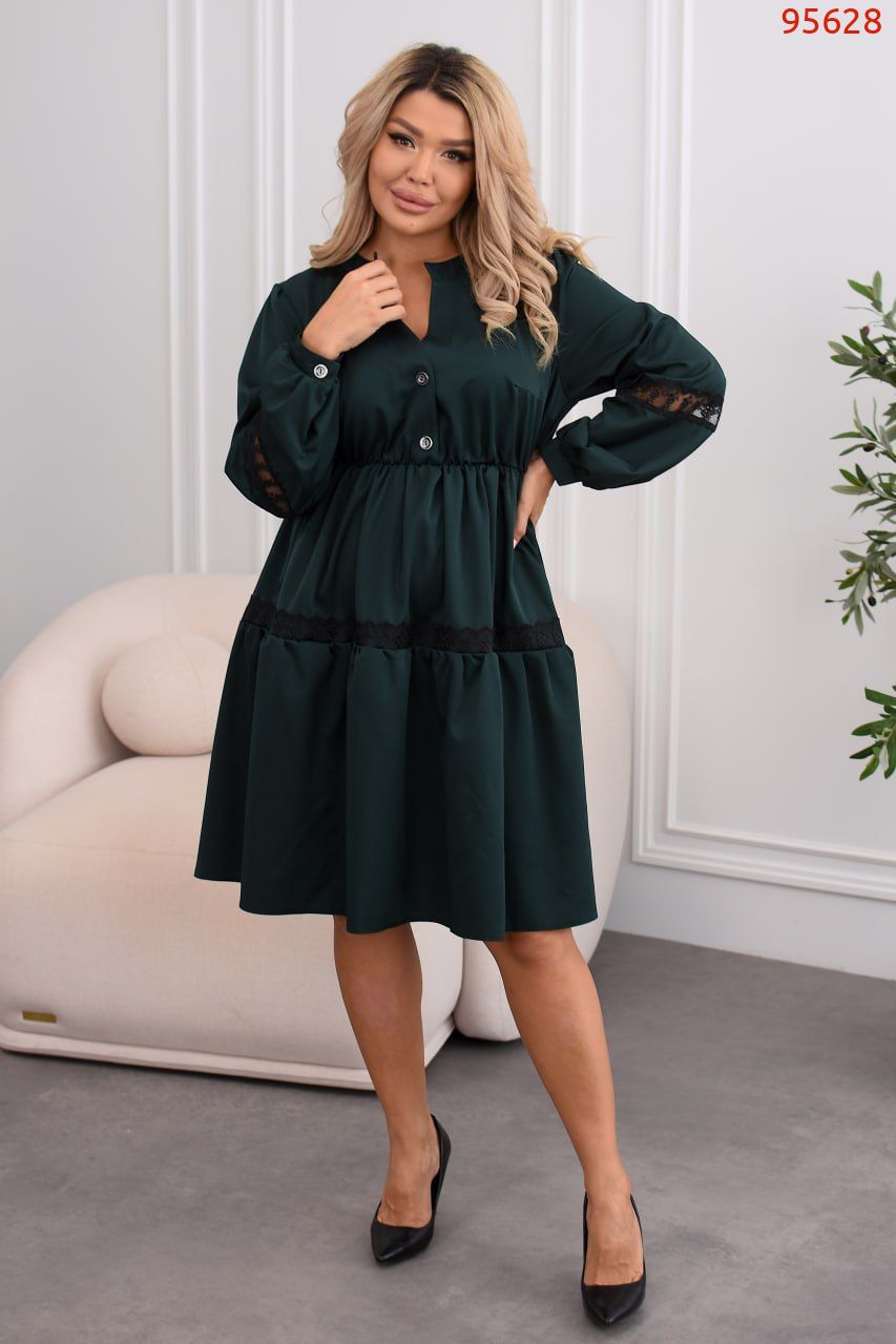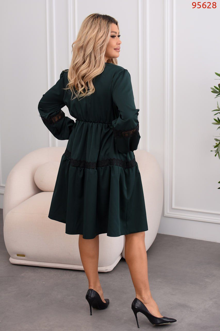 Сукня вільного крою з застібкою на ґудзики до талії. По лінії талії – м’яка резинка для комфортної посадки. Декор із мережива додає ніжності, сукня пасує до кросівок і чобіт, легко комбінується на щодень і на свято.