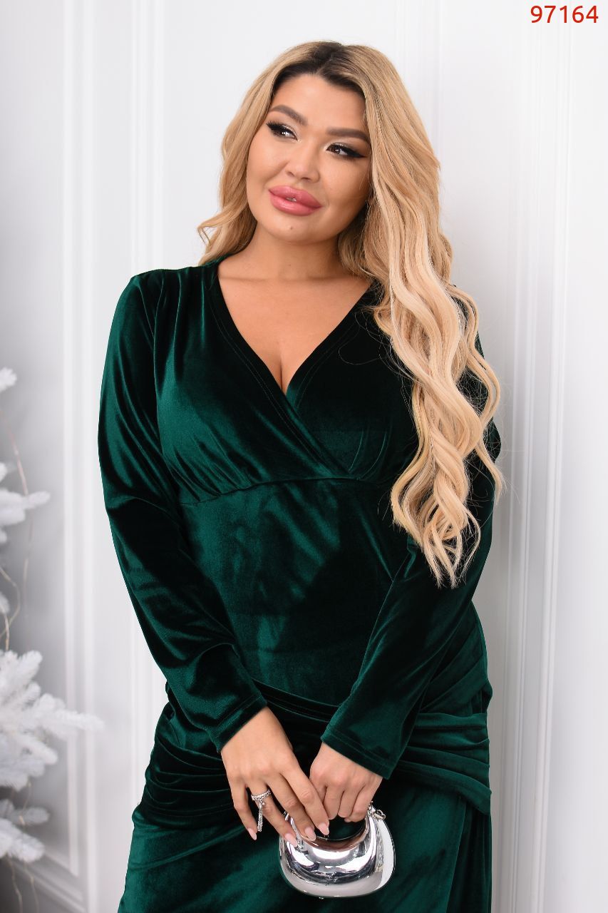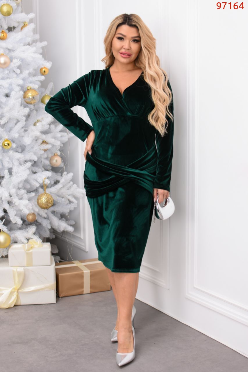 Елегантна приталена сукня із запахом, яка красиво підкреслює фігуру. м’який еластичний бархат, що виглядає розкішно та забезпечує ідеальну посадку.