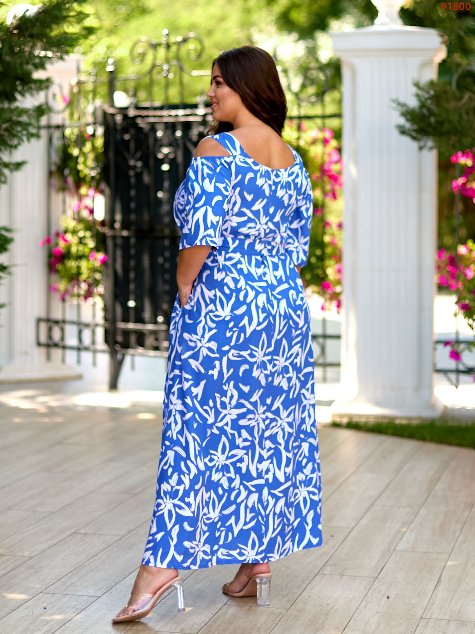 ▪︎ Легка й жіночна сукня з відкритими плечима створена для комфортного літа. ▪︎Вільний крій дарує свободу рухів, а пояс на талії підкреслює силует. ▪︎Рукави — середньої довжини, зі спущеною лінією плеча.