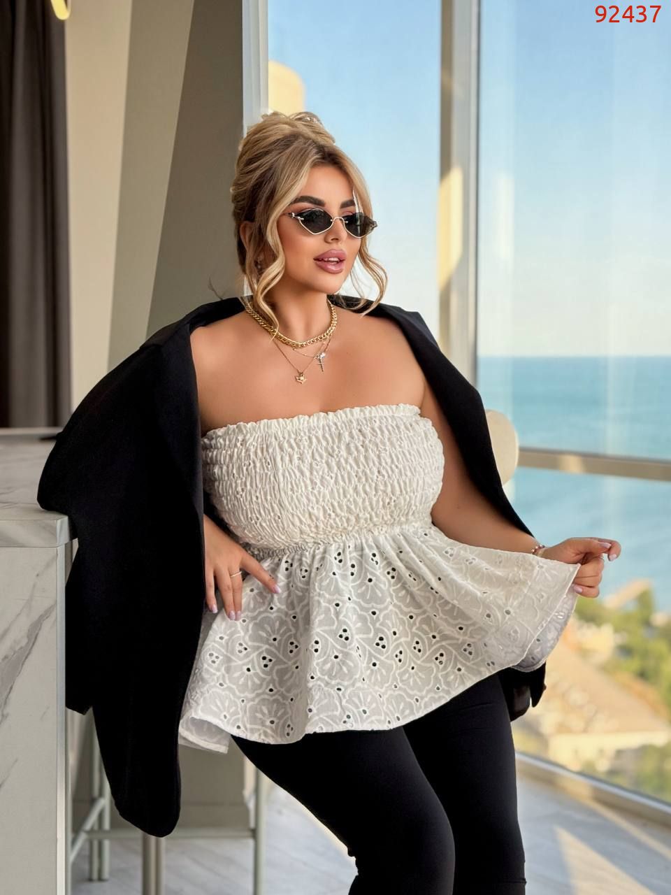 Тканина: Бавовна з вишивкою та перфорацією.
