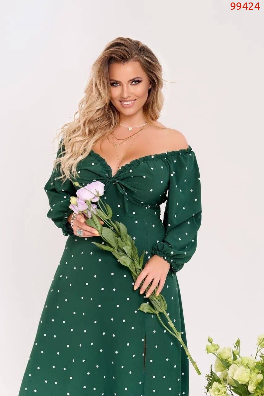 Сукня в горох зелена №99424
