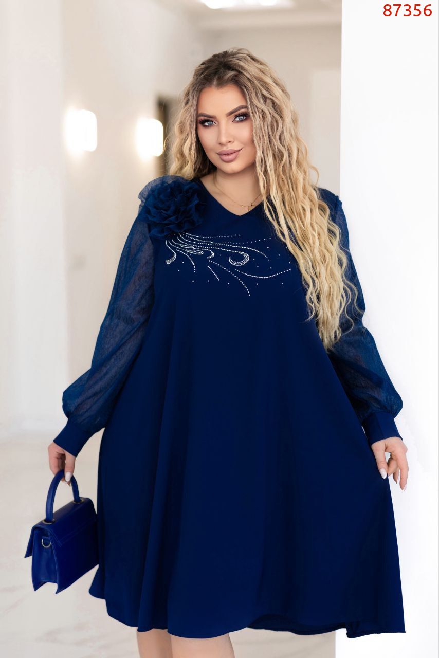 Сукня це - поєднання краси і вишуканості яке поєднує в собі жіночність і ніжність. Сукня вільного крою прикрашена квіткою на плечі та гарними рукавами ліхтарик . В цій сукні Ви будете чарівні , ніжні та вишукані.
