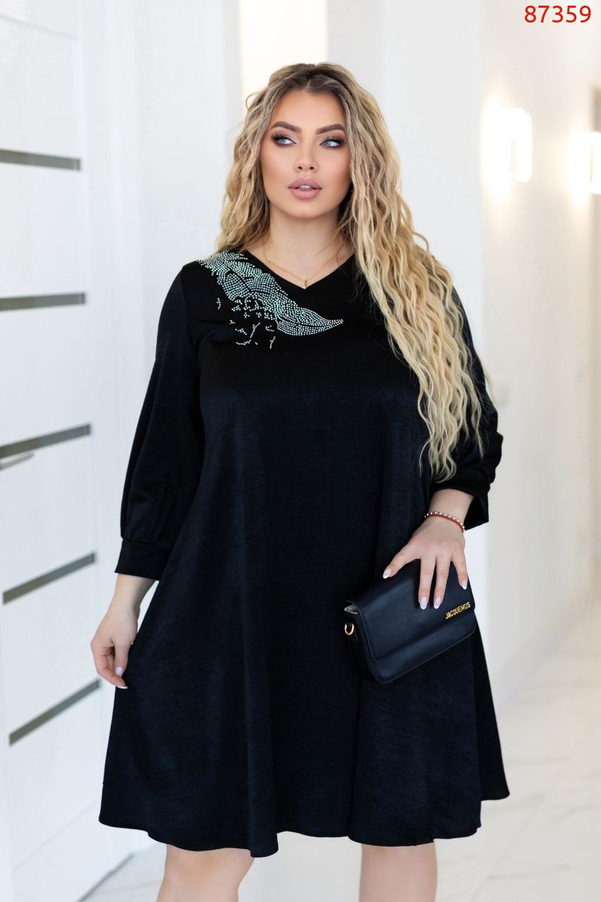 Додаткові характеристики : сукня- трапеція вільного крою . По плечу прикрашена стразами,.Руках іде фонариком, довжина рукава 3/4 . В цій сукні Ви будете почувати себе чарівною.