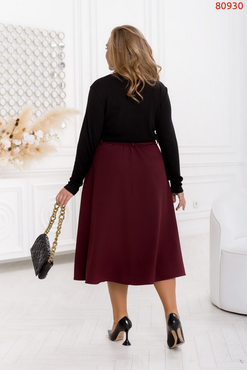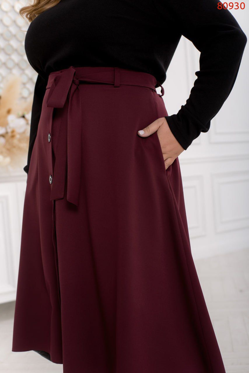 Спідниця в стилі А-силуету з високоякісної костюмної тканини - це втілення елегантності та зручності. Вона має неперевершений дизайн, де кожна деталь має значення. По всій передній частині спідниці розташована елегантна планка з декоративними ґудзиками, що додають унікальний шарм.
