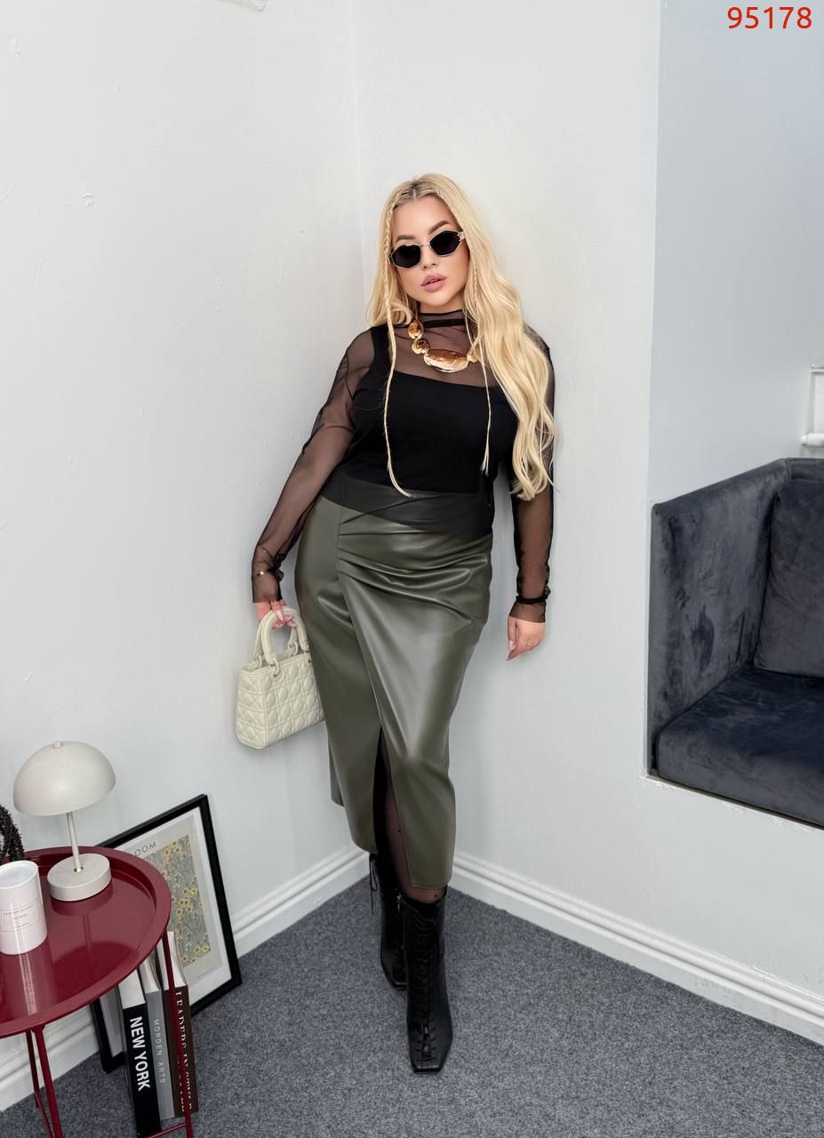 Спідниця з еко-шкіри (хорошої розтяжності) зі імітацією запаху.