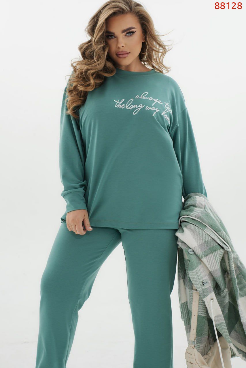 58-60 р-р: довжина брюк по внутрішньому шву 76см, довжина брюк по зовнішньому шву з урахуванням поясу 108см, ОТ – 88/128см, ОС -124см.