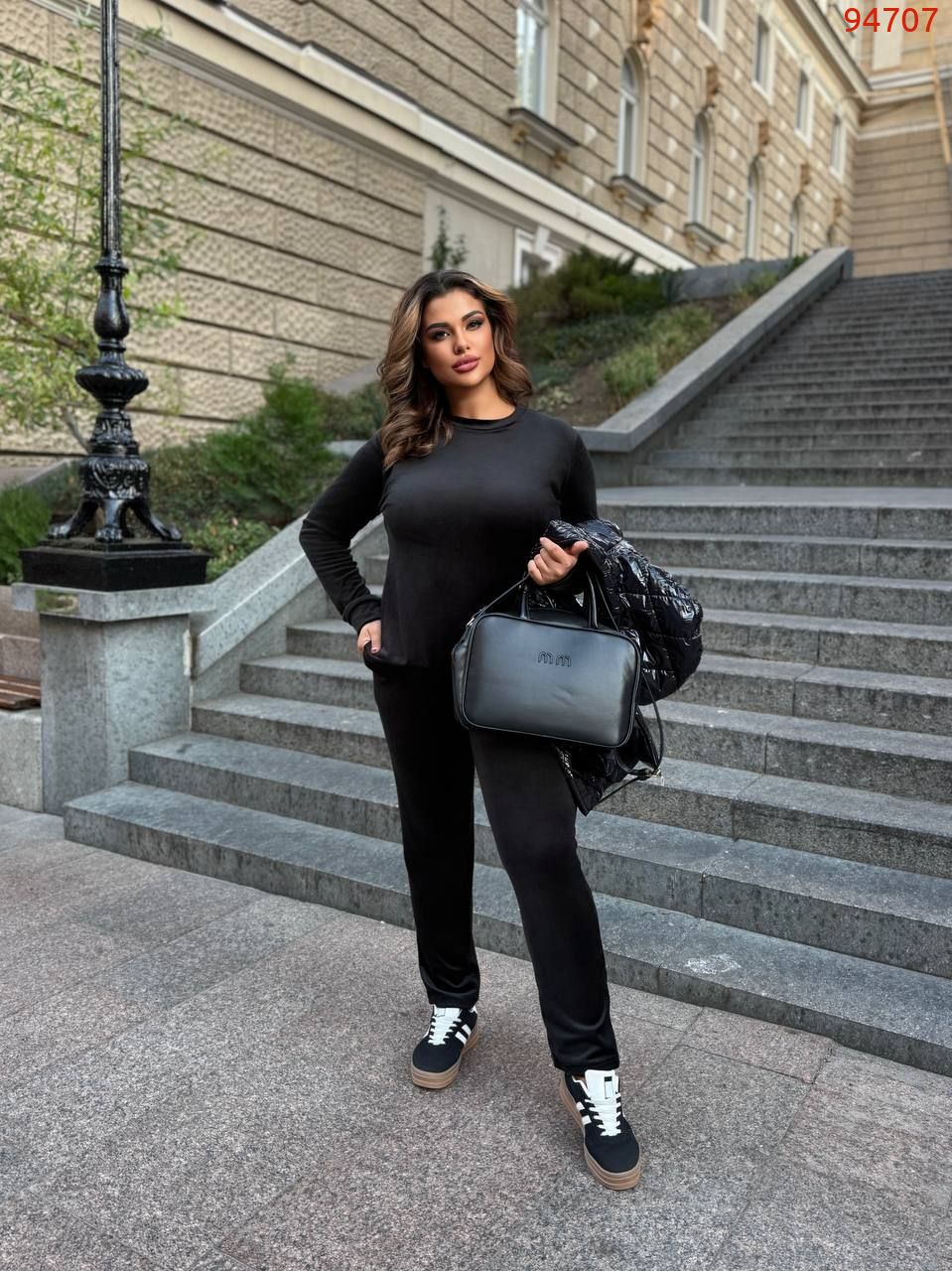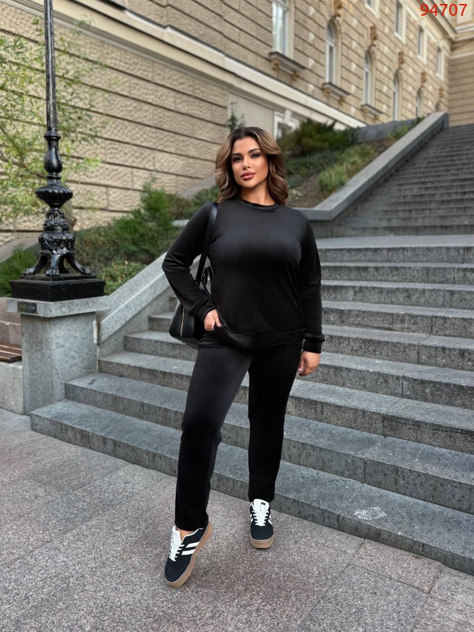 Розкіш у кожній деталі. М’який благородний блиск велюру робить цей костюм особливим – він ніби створений для вечорів, коли хочеться бути в центрі уваги. Глибока фактура тканини грає на світлі, додаючи образу шарму та вишуканості. Це вибір для тих, хто цінує комфорт і любить привертати погляди.