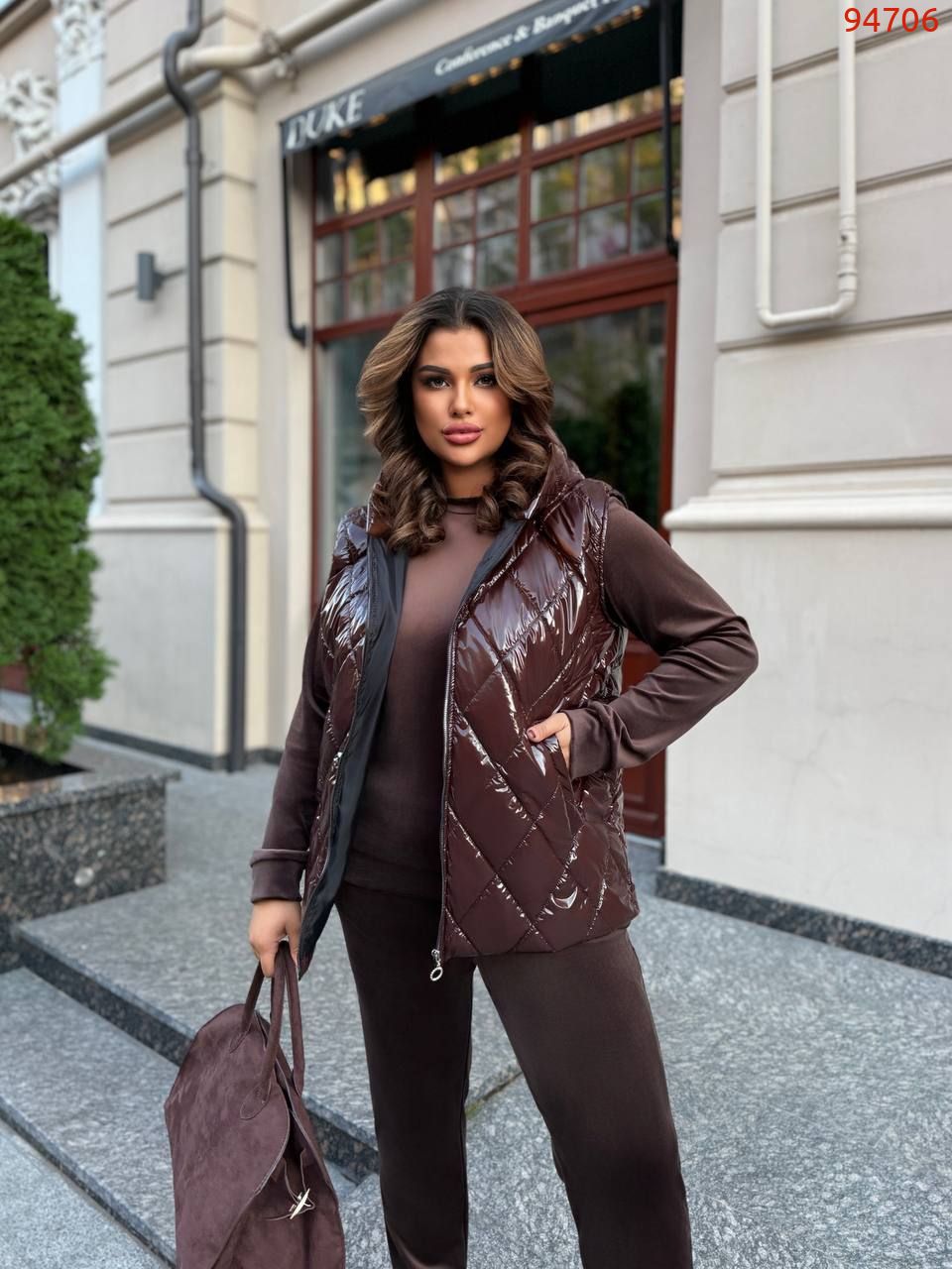 Тканина: костюм - велюр . Жилет - плащовка *монклер* - стьобана на 150 синтепоні ( переливається )