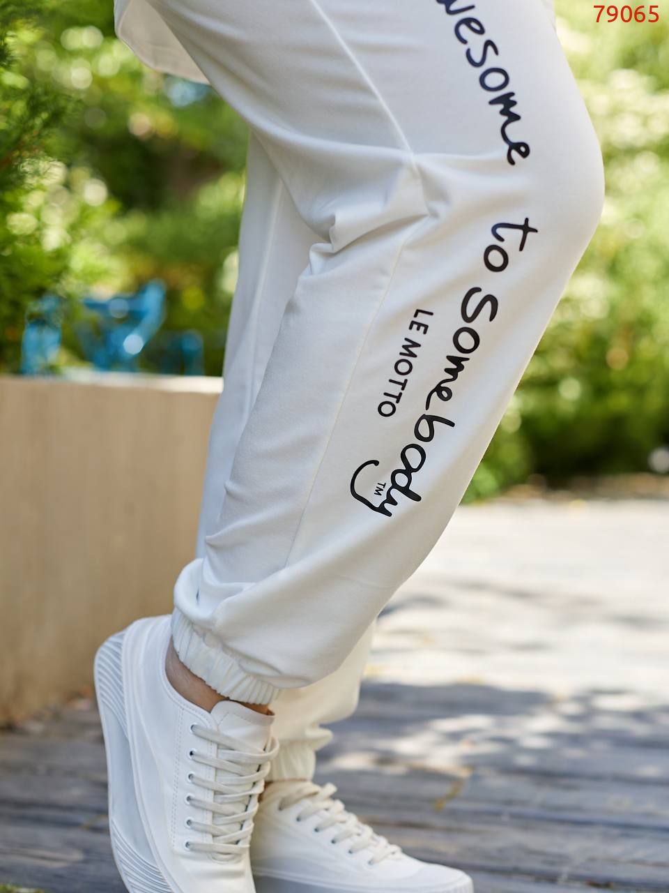 Штани з високою посадкою, пояс гумка, кишені, низ на манжеті, накат по нозі
