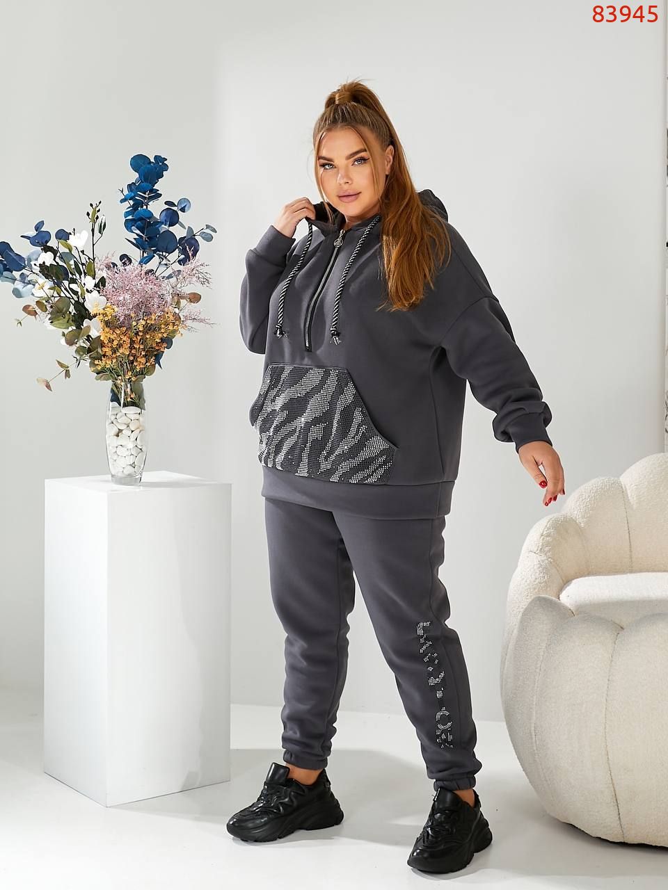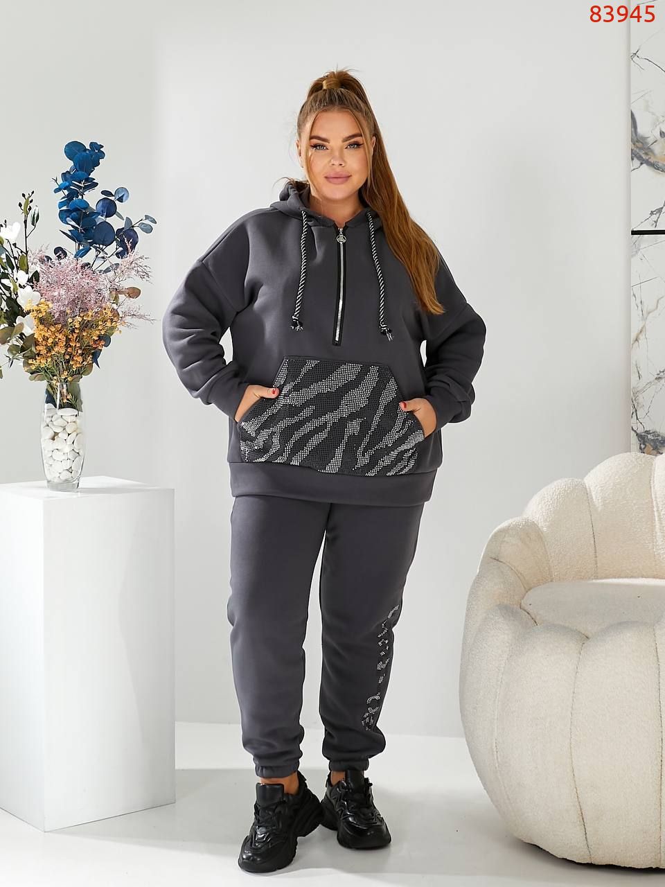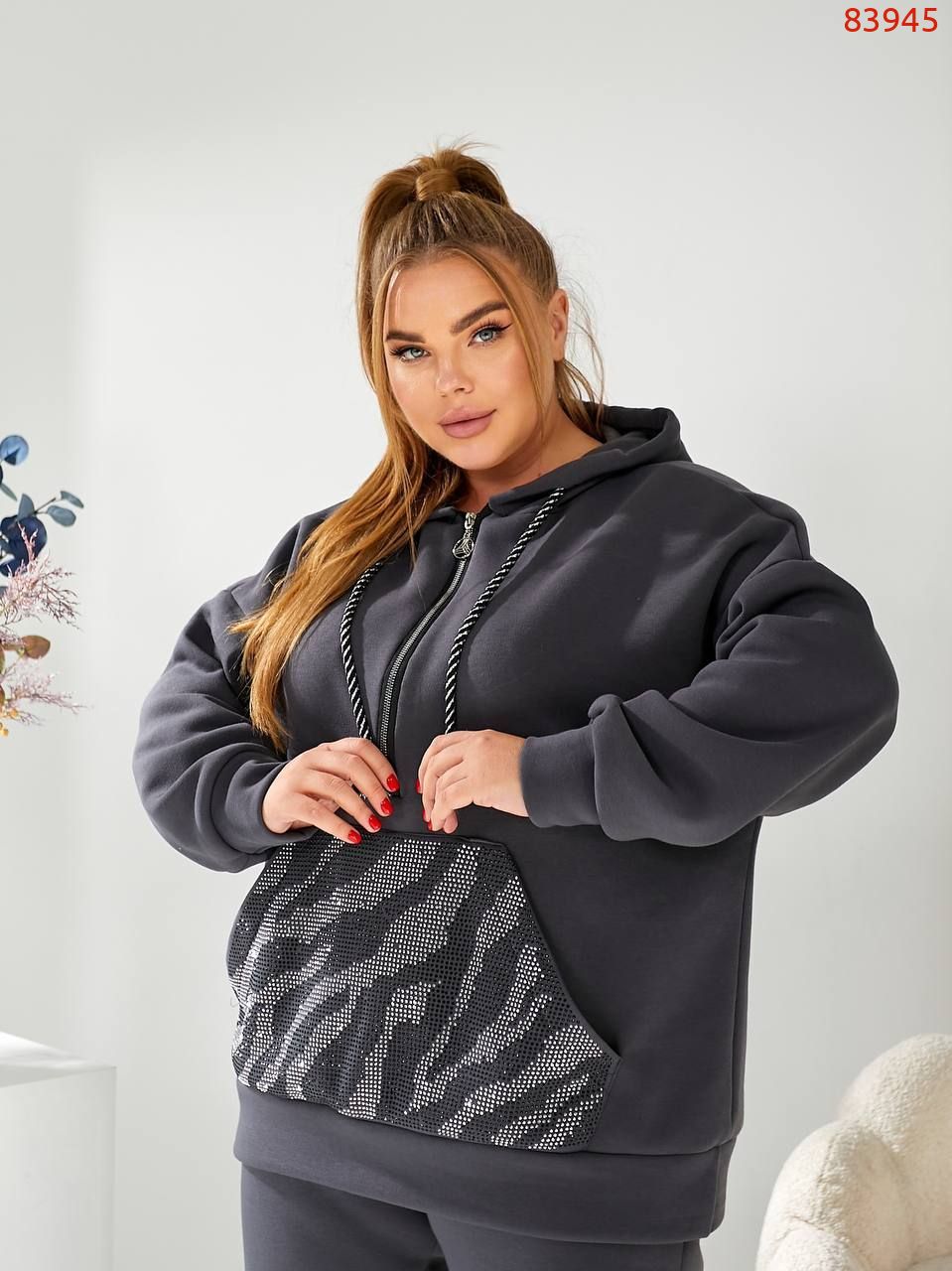 Кофта вільного крою, зручний глибокий капюшон, декорована камінням.