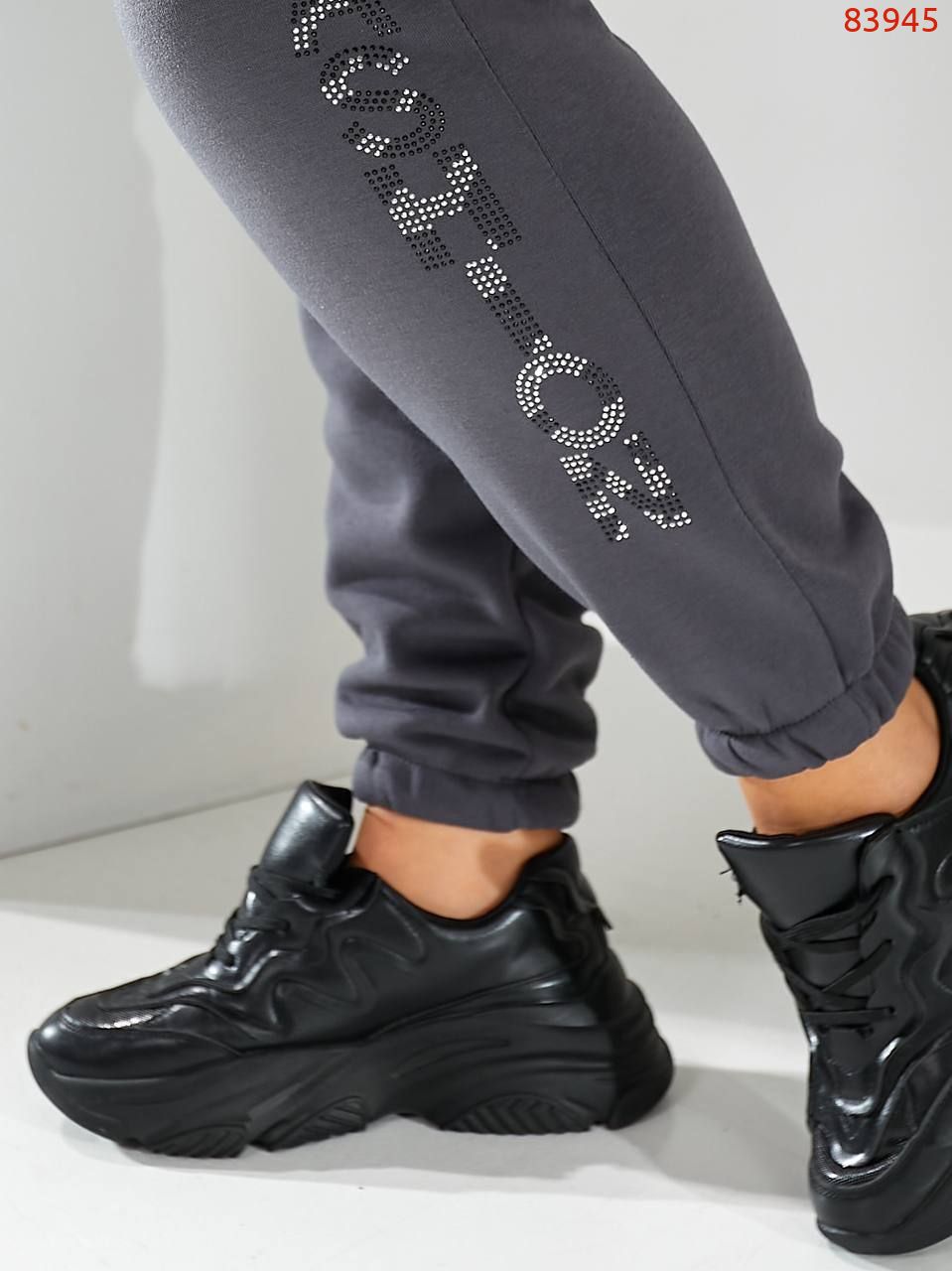 Брюки з високою посадкою, пояс гумка 4 см, декоровані камінням, манжет гумка