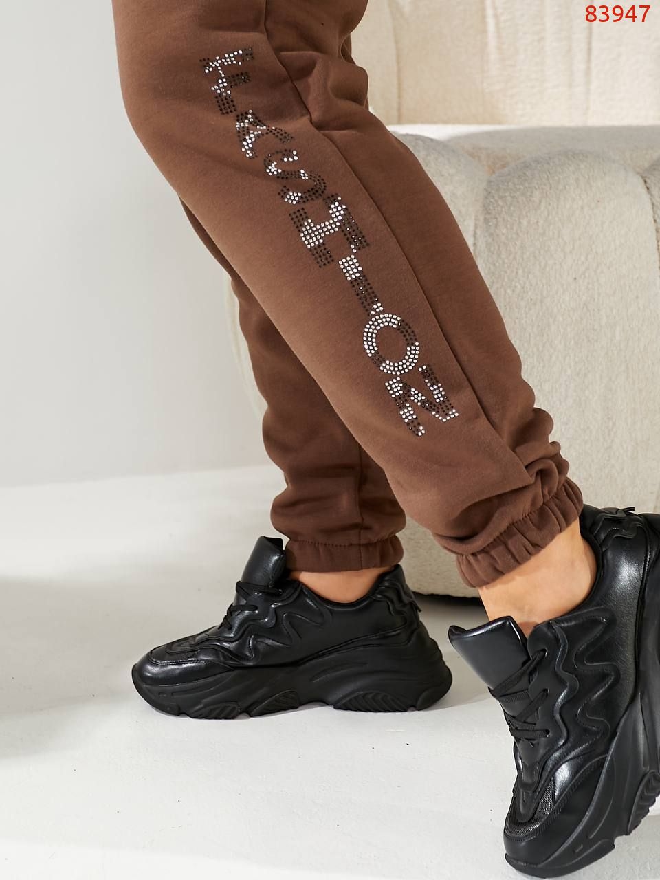 Брюки з високою посадкою, пояс гумка 4 см, декоровані камінням, манжет гумка