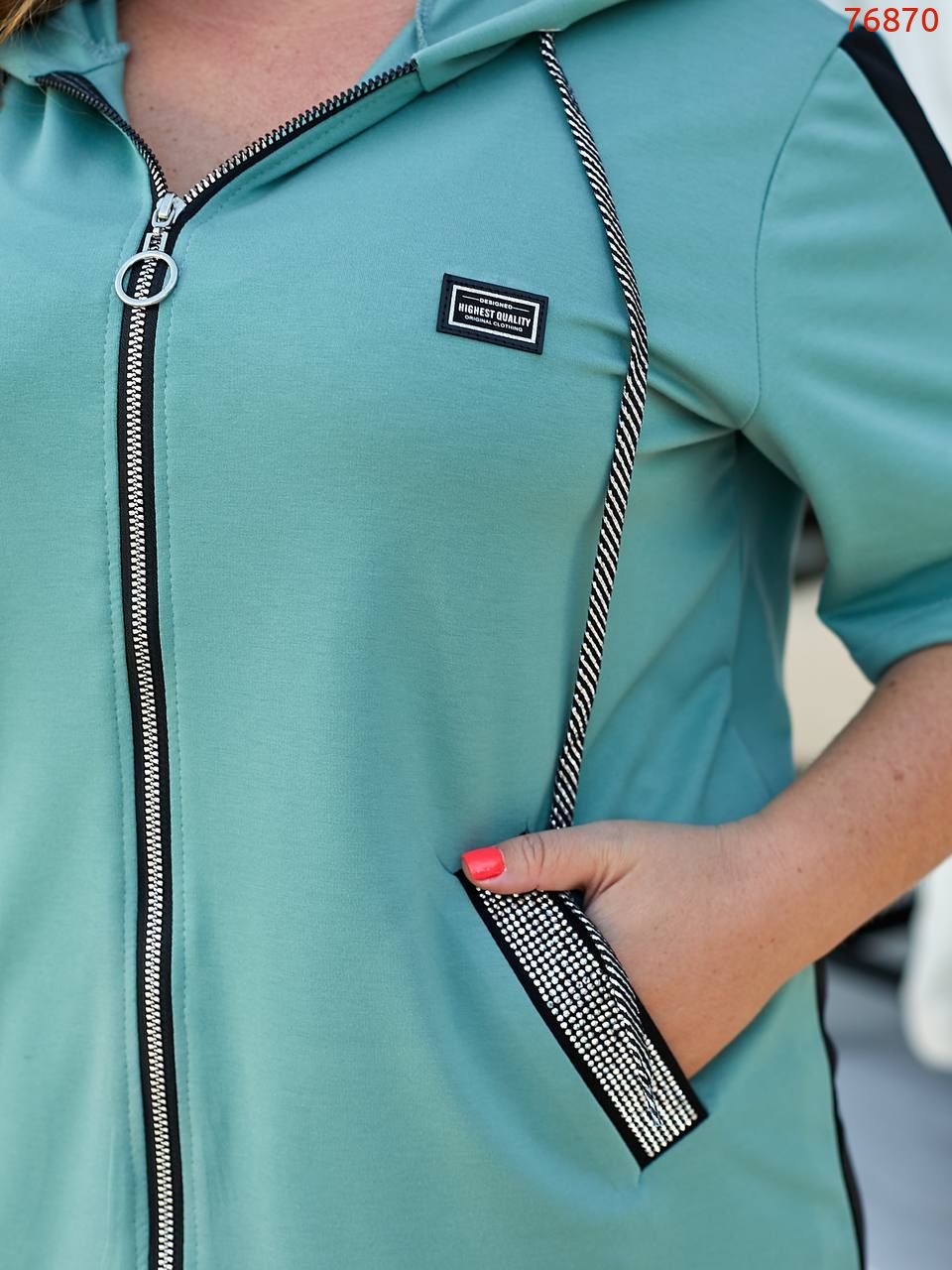 Кофта подовжена на змійці, декорована камінням, нашивка (може змінюватися)