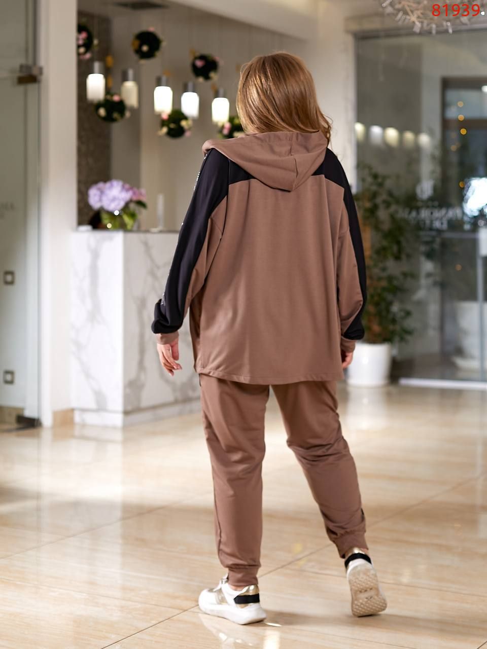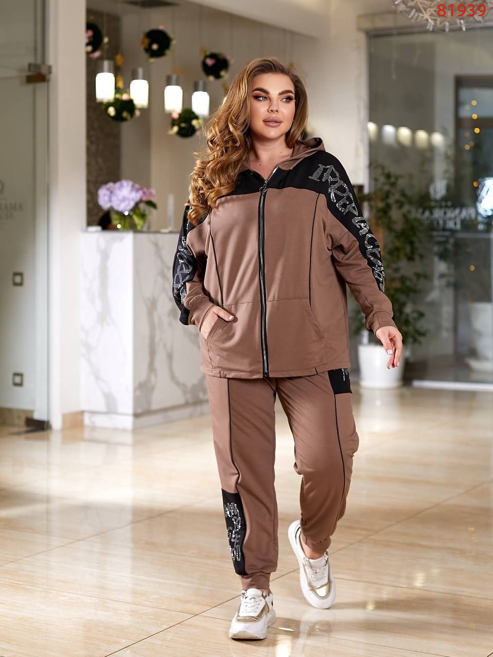 Кофта подовжена на змійці, декорована кантом та камінням, кишені.
