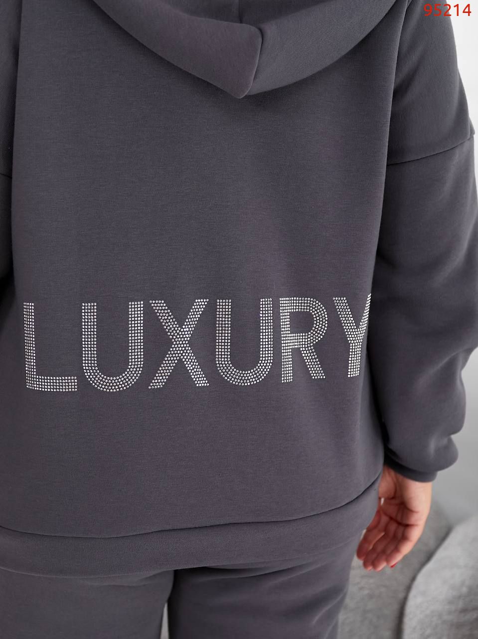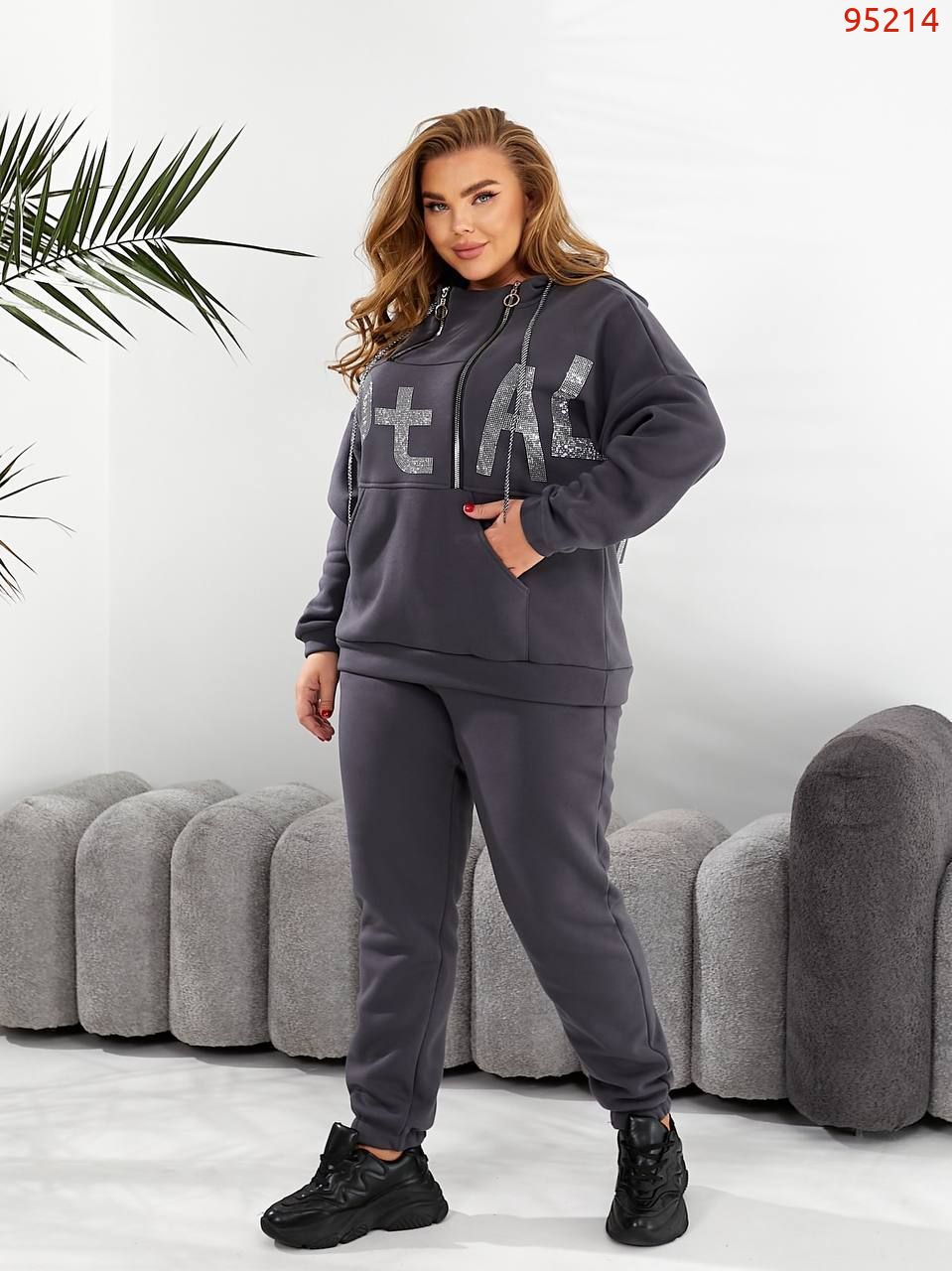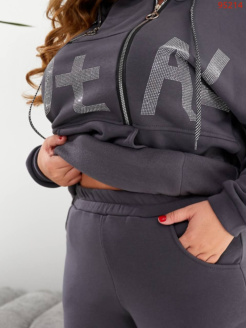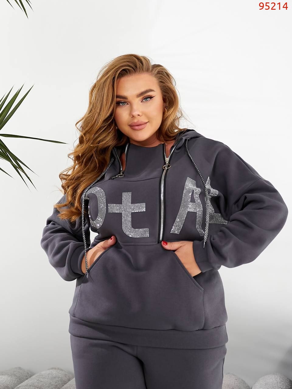Кофта вільного крою, зручний глибокий капюшон, декорована камінням.