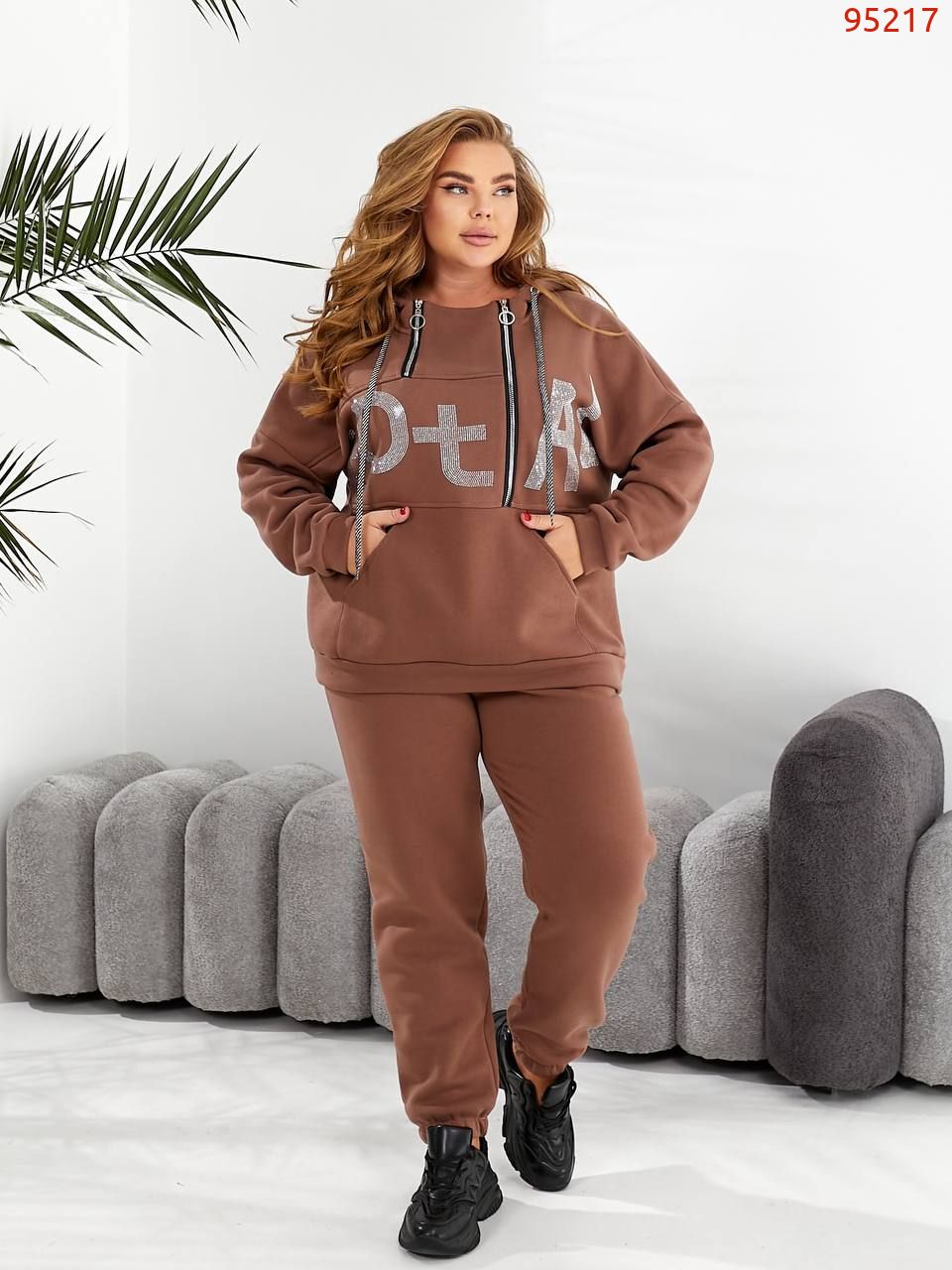 Кофта вільного крою, зручний глибокий капюшон, декорована камінням.