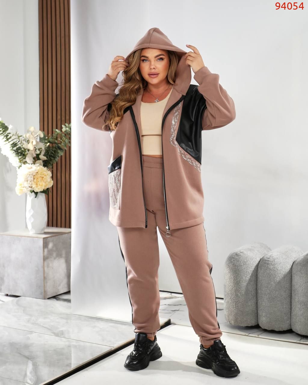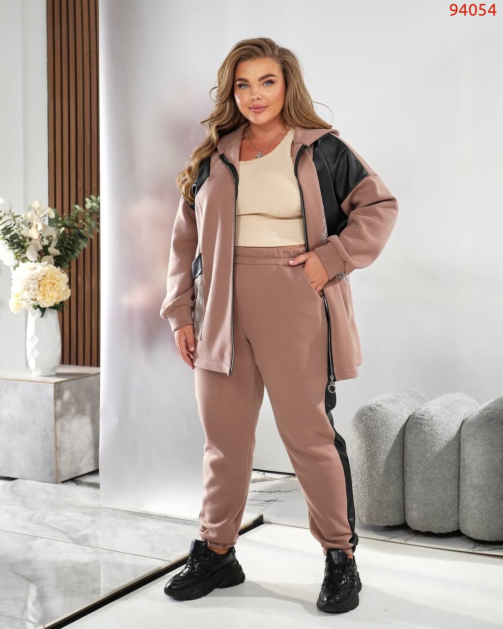 Тканина: трьохнитка на флісі + екошкіра