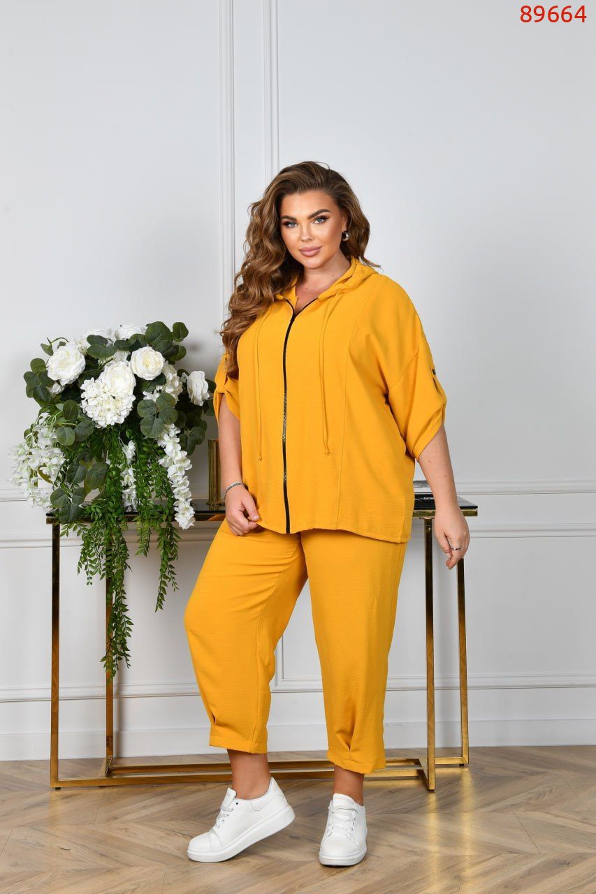 Мегастильний літній костюм із жатого крепу (тканина не мнеться, розтяжність мінімальна).