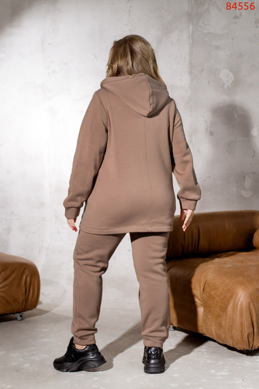 Універсальний костюм, який зігріє вас в прохолодну погоду, костюм складається із теплої кофти із трьохнитки на флісі, яка комбінована з плащівкою по передній частині виробу. Під плащівкою розміщена тонка підкладка. А по боках в основі ми додали кишені. Виріб, доповнений капюшоном зі шнурком та люверсами. Рукава довгі та доповнені манжетами. Брюки з гумкою на талії та бічними кишенями. Внизу штани на манжетах. Універсальний варіант для примхливої осінньої погоди для того, щоб бути завжди в теплі.