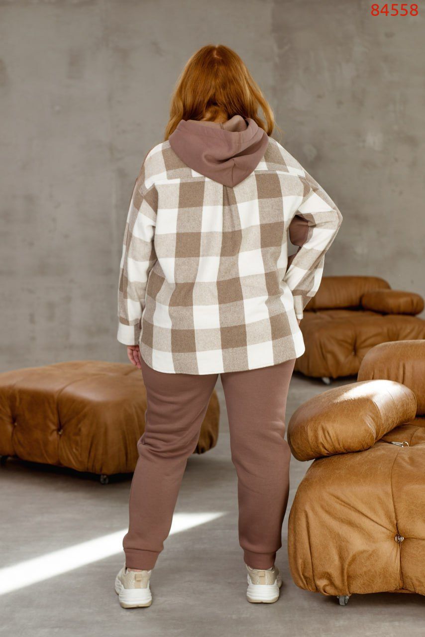 Чудовий варіант костюма для тих, кому хочеться замінити однотонні спортивні костюми на щось цікаве. Кофта виконана в комбінації з 2-х варіацій трьохнитки на флісі преміум якості: Основна однотонна основа, оздоблювальна трендова клітинка.