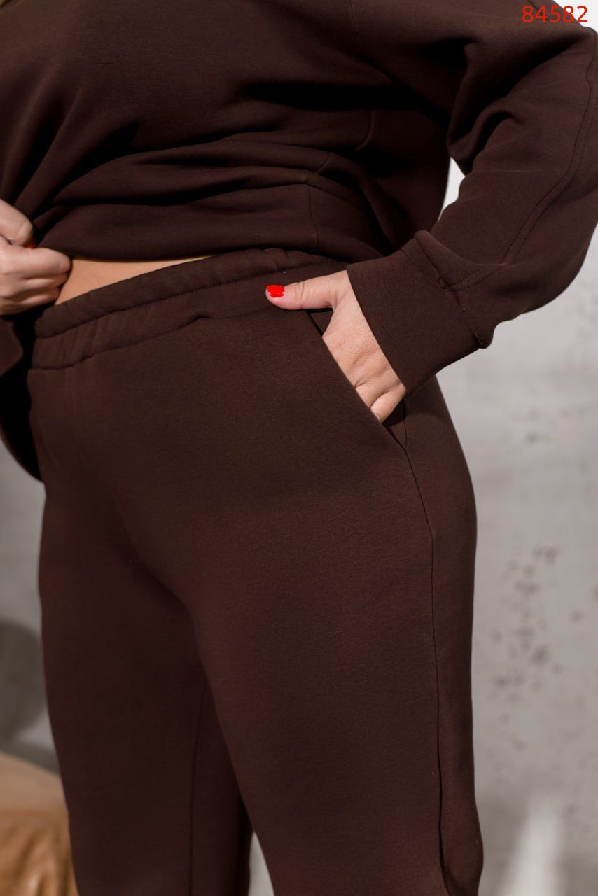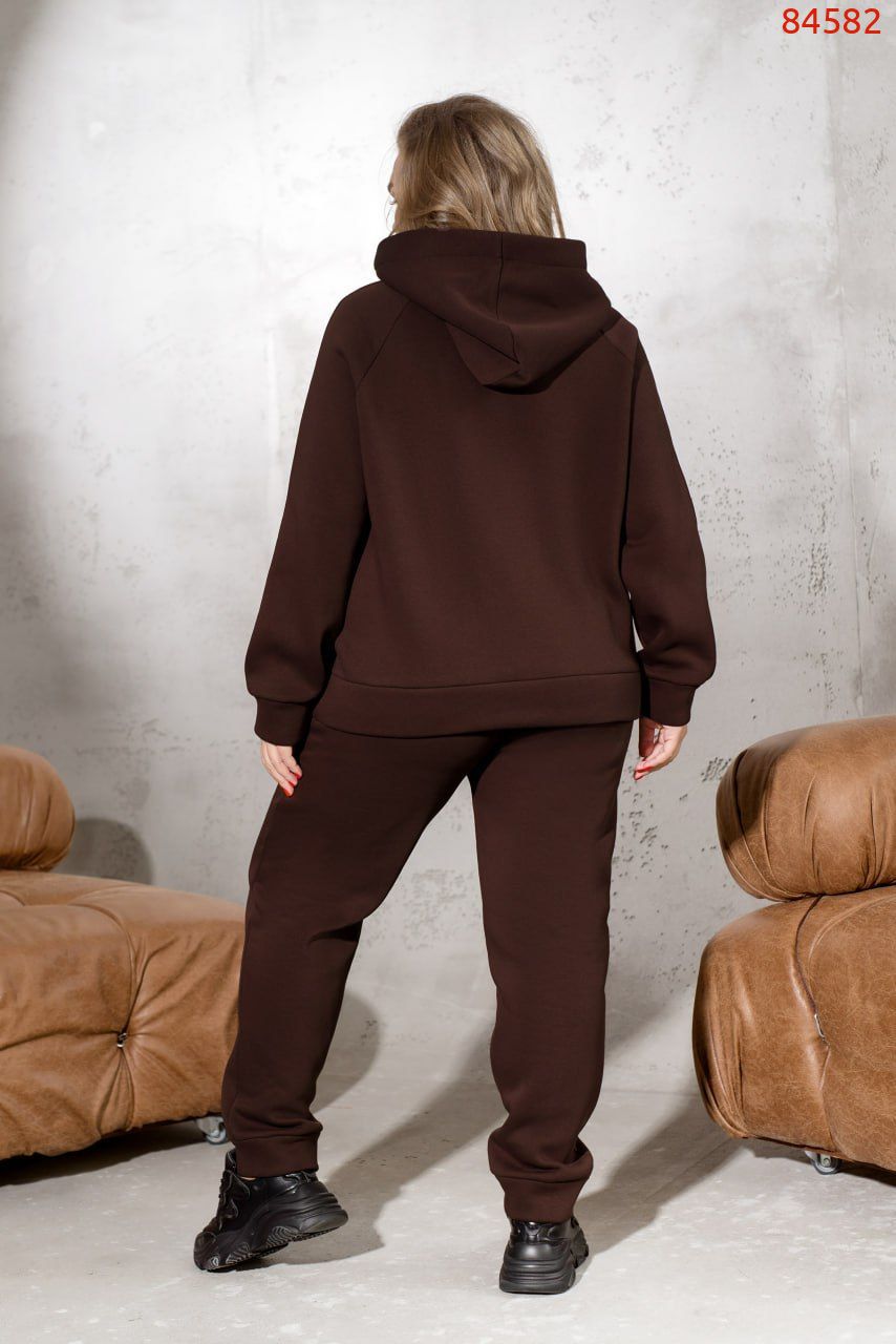 Теплий спортивний костюм із трьохнитки на флісі, який не кошлатиться, створений для максимального комфорту та затишку. Худі із капюшоном має дві кнопки на горловині, що надійно захищають від холоду та забезпечують додаткове тепло, прикриваючи шию. Довгі рукави з манжетами гарантують комфортну посадку та зберігають тепло. Штани з високою посадкою на гумці чудово підкреслюють талію, а манжети внизу забезпечують зручність та стиль. Модель також оснащена практичними боковими кишенями, які додають функціональності. Ідеальний варіант для прохолодної погоди та активного відпочинку.