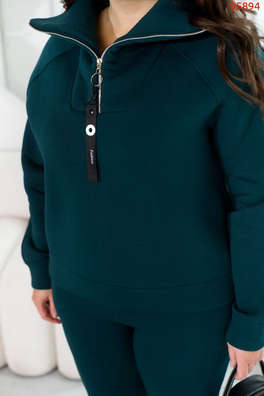 Спортивний костюм із трьохнитки на флісі забезпечує ідеальне поєднання тепла та комфорту в прохолодну погоду. Худі має зручну змійку і високу горловину, що ефективно захищає шию від холоду. Довгі рукави з манжетами забезпечують комфортну посадку та зберігають тепло. Штани з високою посадкою на еластичній гумці підкреслюють фігуру та забезпечують максимальну свободу рухів. Манжети внизу штанів додають стильного вигляду та додаткового тепла. Бокові кишені роблять костюм практичним і зручним для щоденного носіння або активного відпочинку.