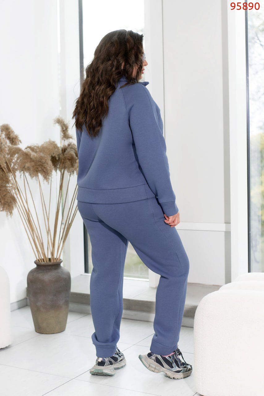 Спортивний костюм із трьохнитки на флісі забезпечує ідеальне поєднання тепла та комфорту в прохолодну погоду. Худі має зручну змійку і високу горловину, що ефективно захищає шию від холоду. Довгі рукави з манжетами забезпечують комфортну посадку та зберігають тепло. Штани з високою посадкою на еластичній гумці підкреслюють фігуру та забезпечують максимальну свободу рухів. Манжети внизу штанів додають стильного вигляду та додаткового тепла. Бокові кишені роблять костюм практичним і зручним для щоденного носіння або активного відпочинку.