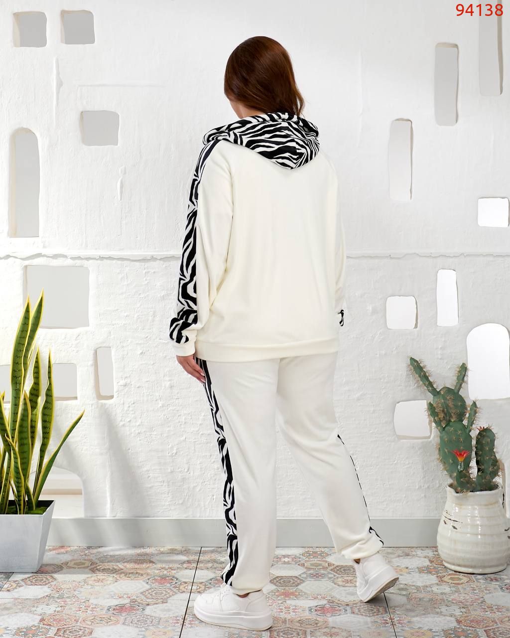 Кофта вільного силуету з капюшоном , кишені листочки. Прикрашений вставками з зебри. Рукав на манжеті.