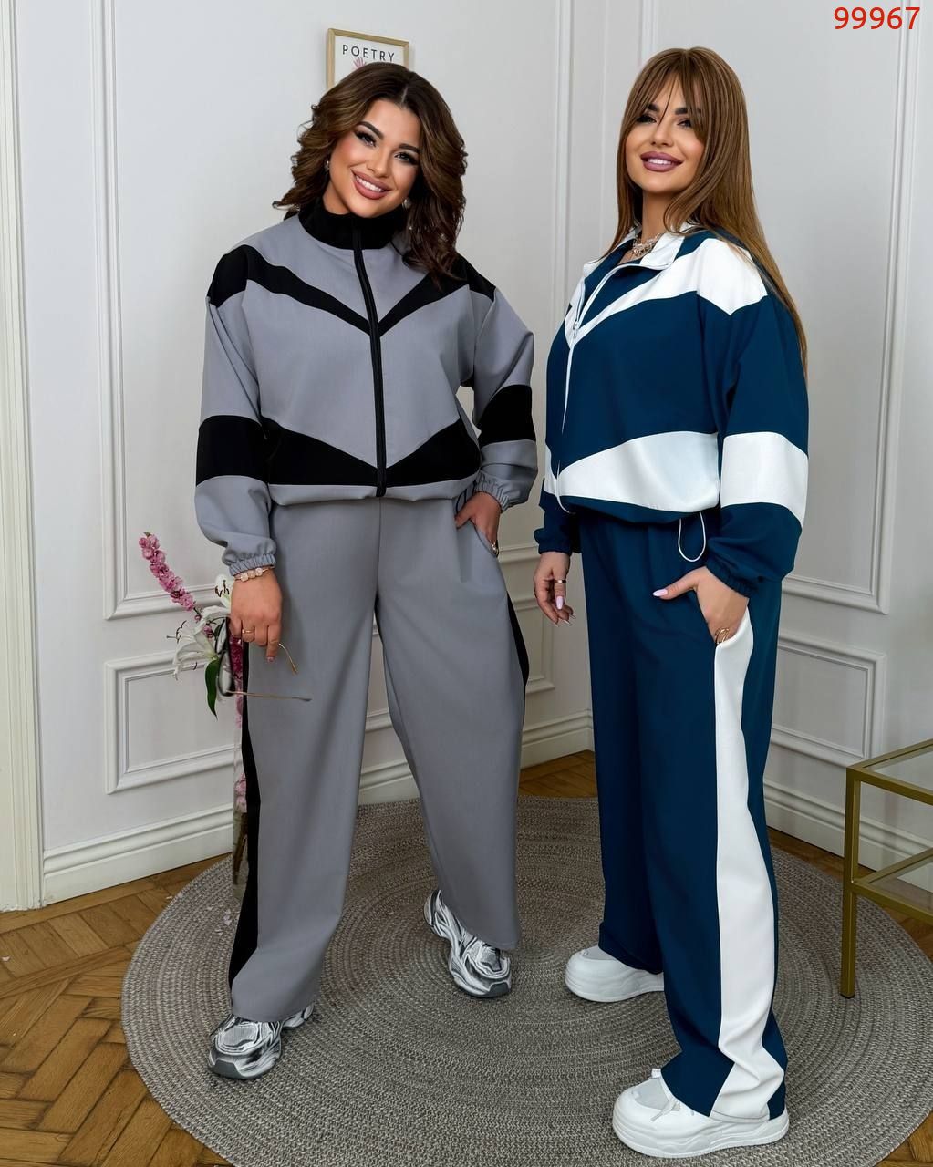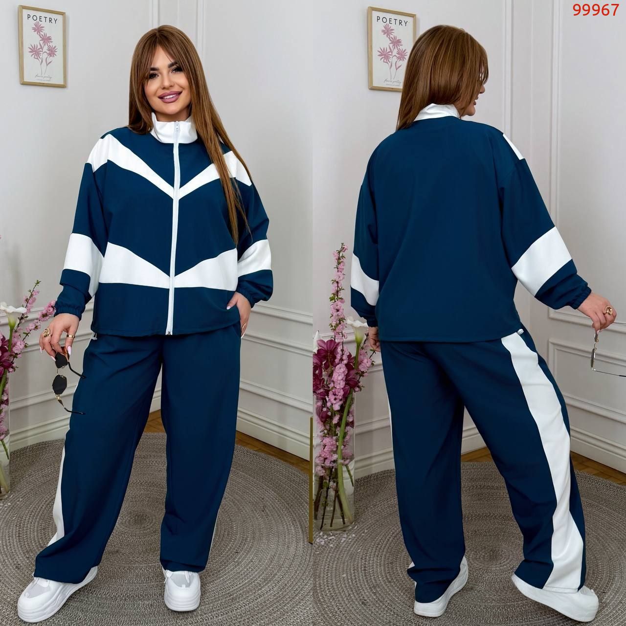 Штани з високою посадкою , пояс на гумці , бічні кишені , бічні вставки . Кофта прямого покрою з вставками , на блискавці , комір стійка , низ на фіксаторі .