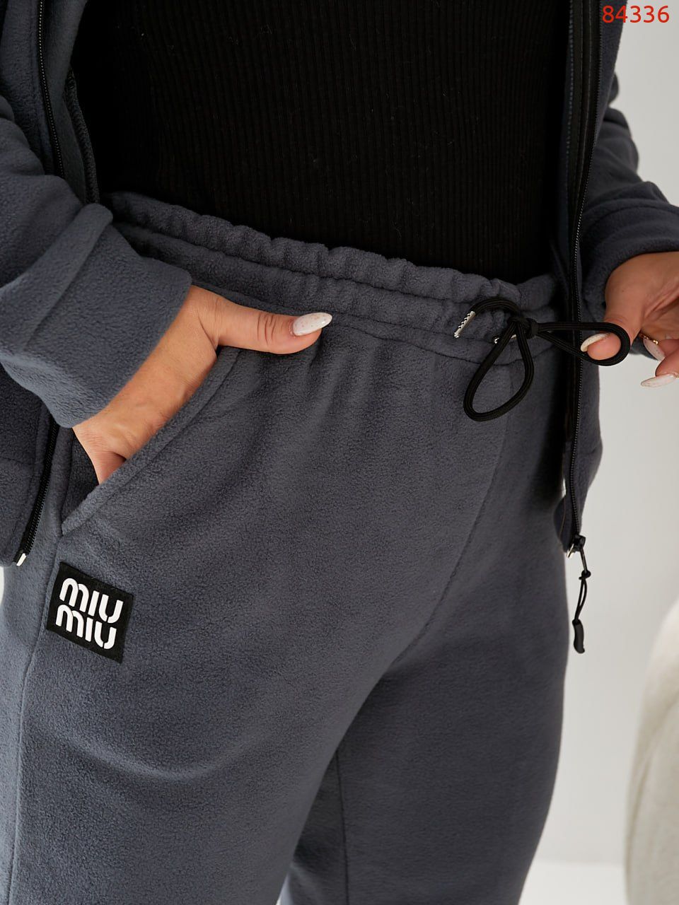 Теплый костюм з якісного флісу полар, штани зі зручними кишенями середньої посадки на резинці, кофта застібається на молнію по всій довжині та доповнена прорізними кишенями на молнії