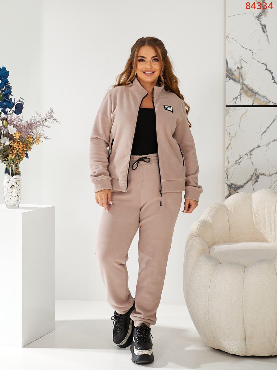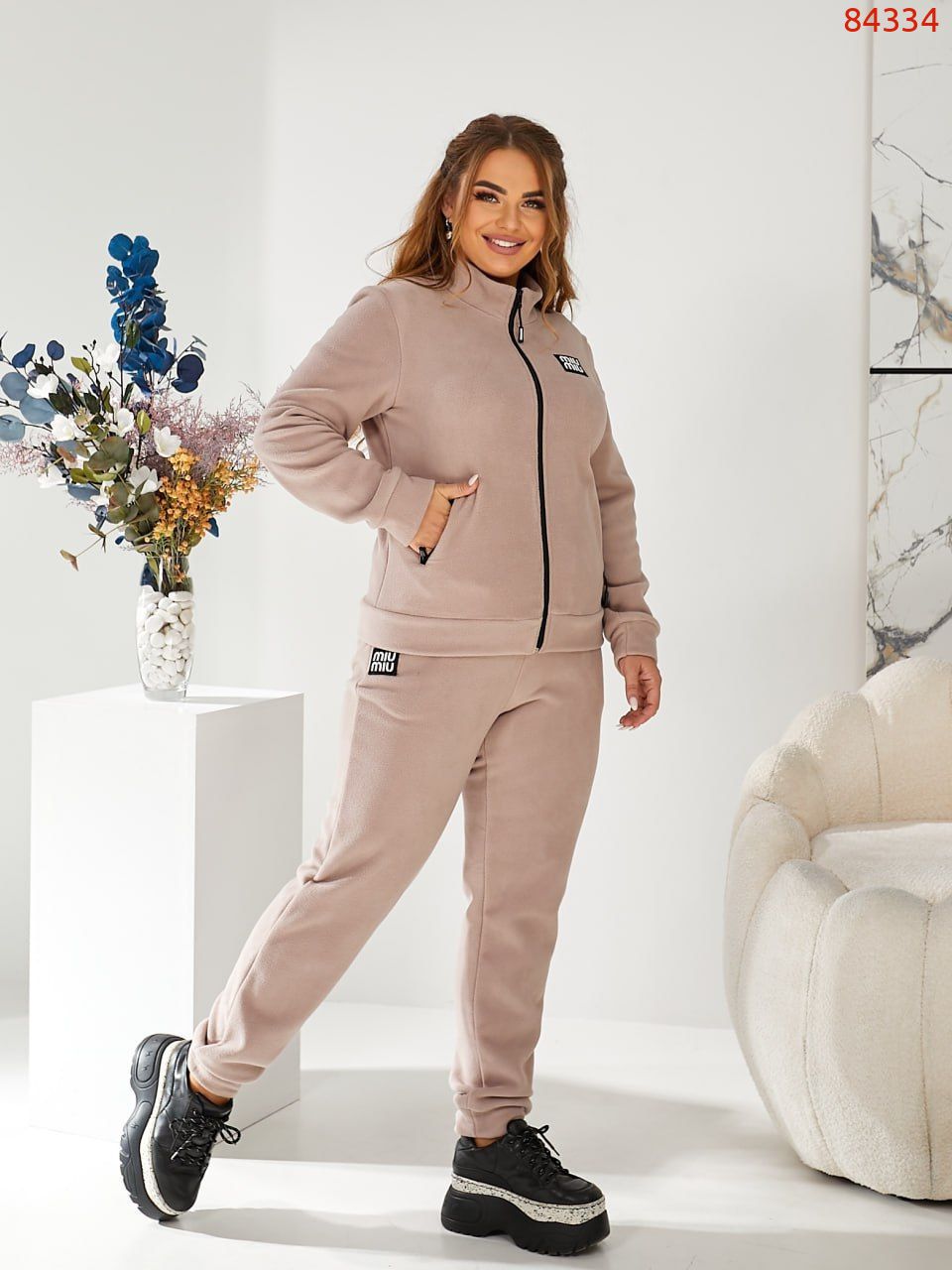 Теплый костюм з якісного флісу полар, штани зі зручними кишенями середньої посадки на резинці, кофта застібається на молнію по всій довжині та доповнена прорізними кишенями на молнії